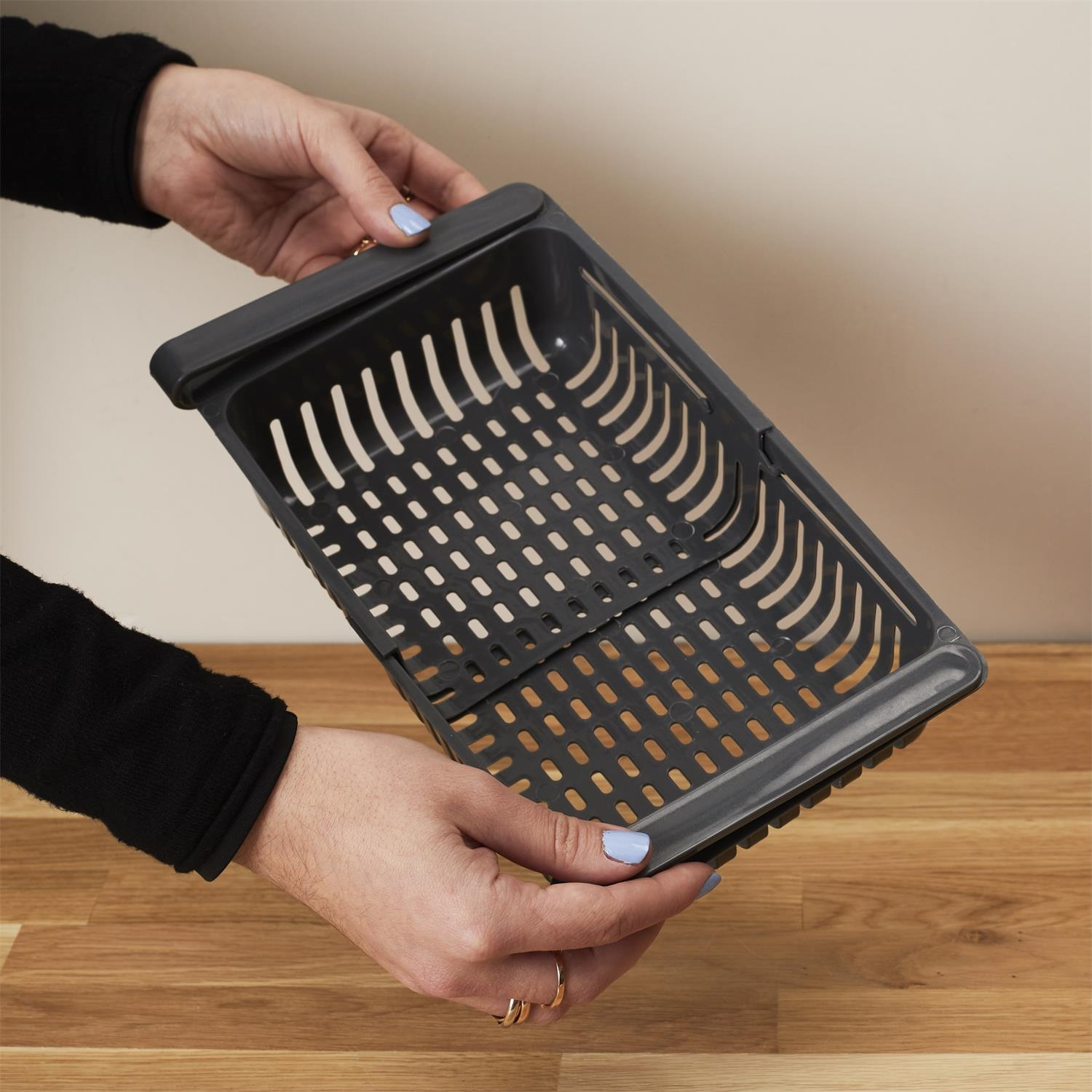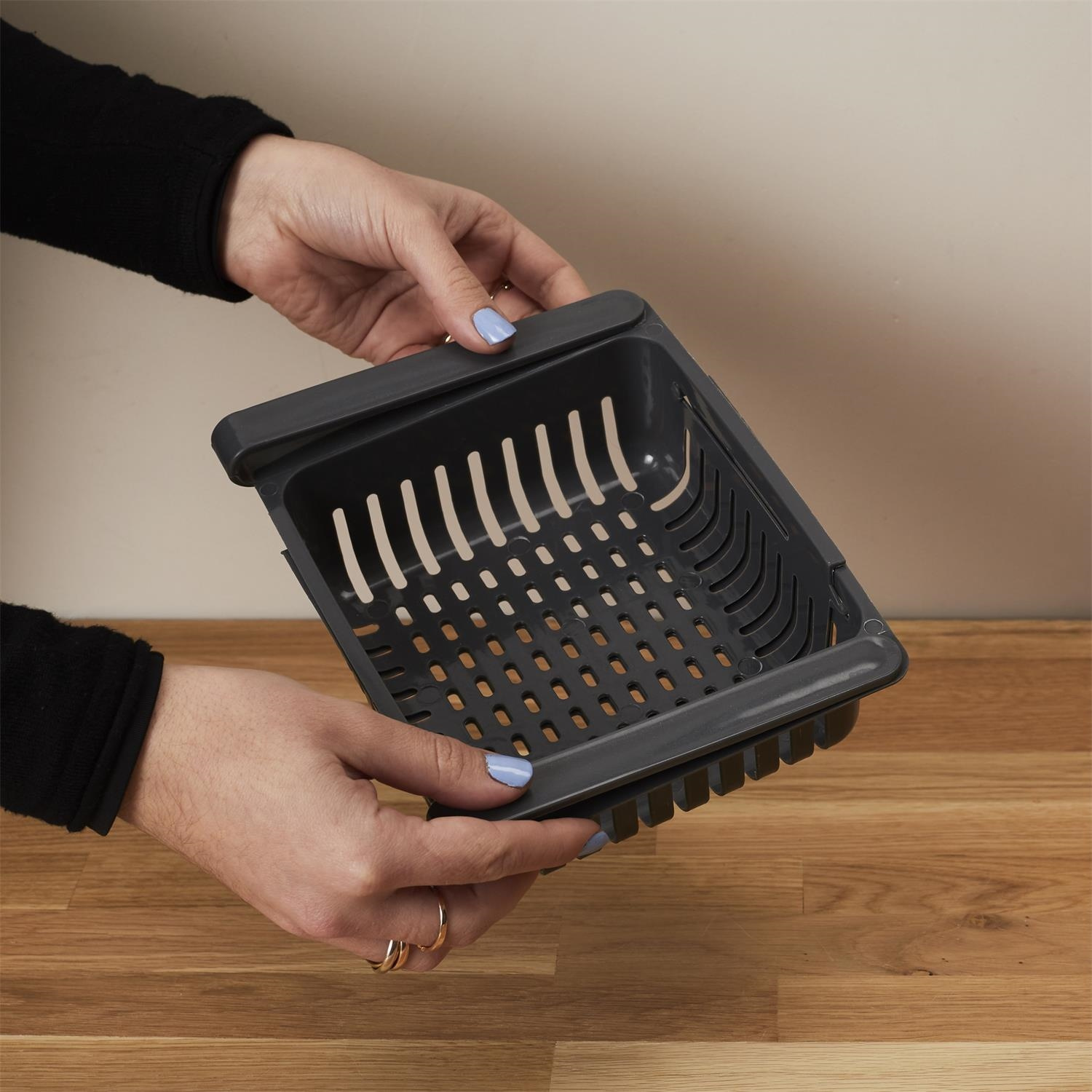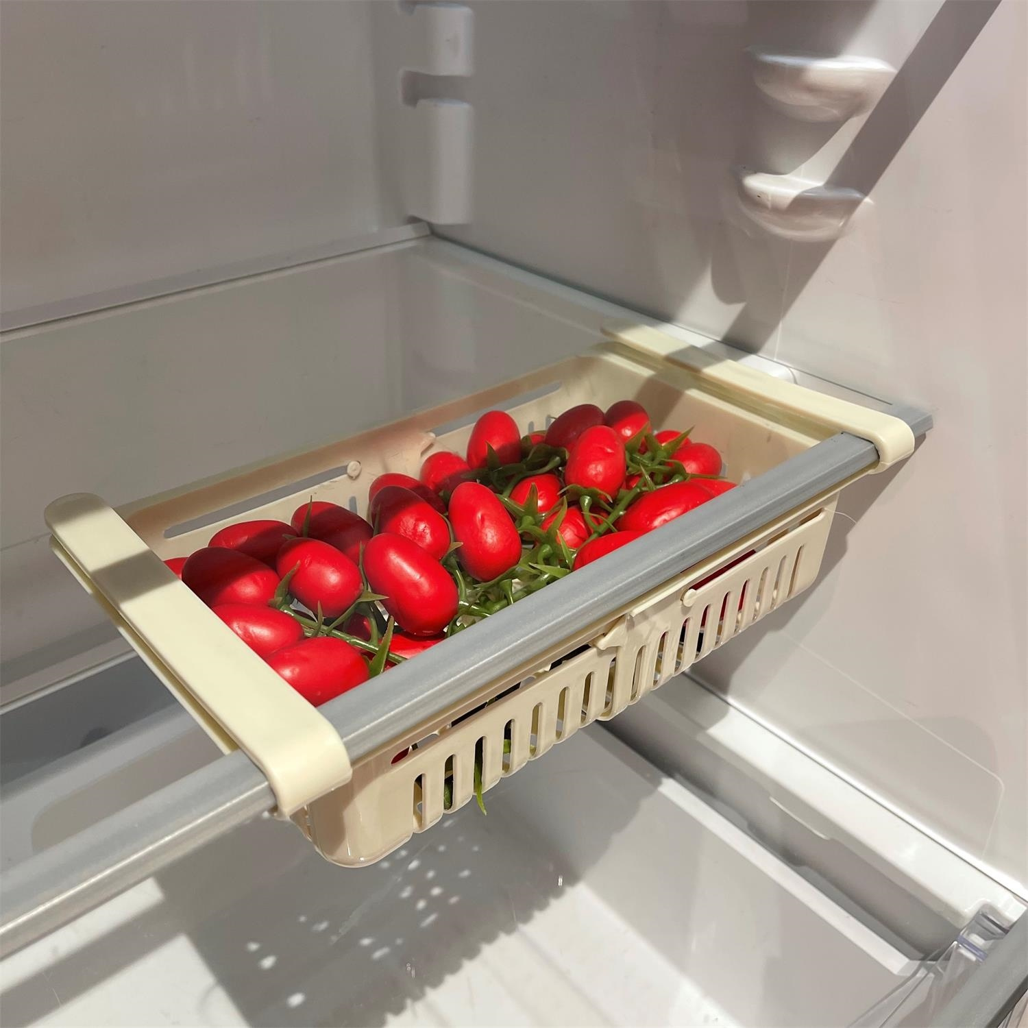 Podwieszana półka do lodówki z możliwością dopasowania jej szerokości do naszych potrzeb. Półka posiada regulację szerokości od 14 do 24cm. Możemy w niej przechowywać nawet warzywa i owoce, gdyż półka jest ażurowa co sprzyj cyrkulacji powietrza w niej. Półka wykonana z polipropylenu