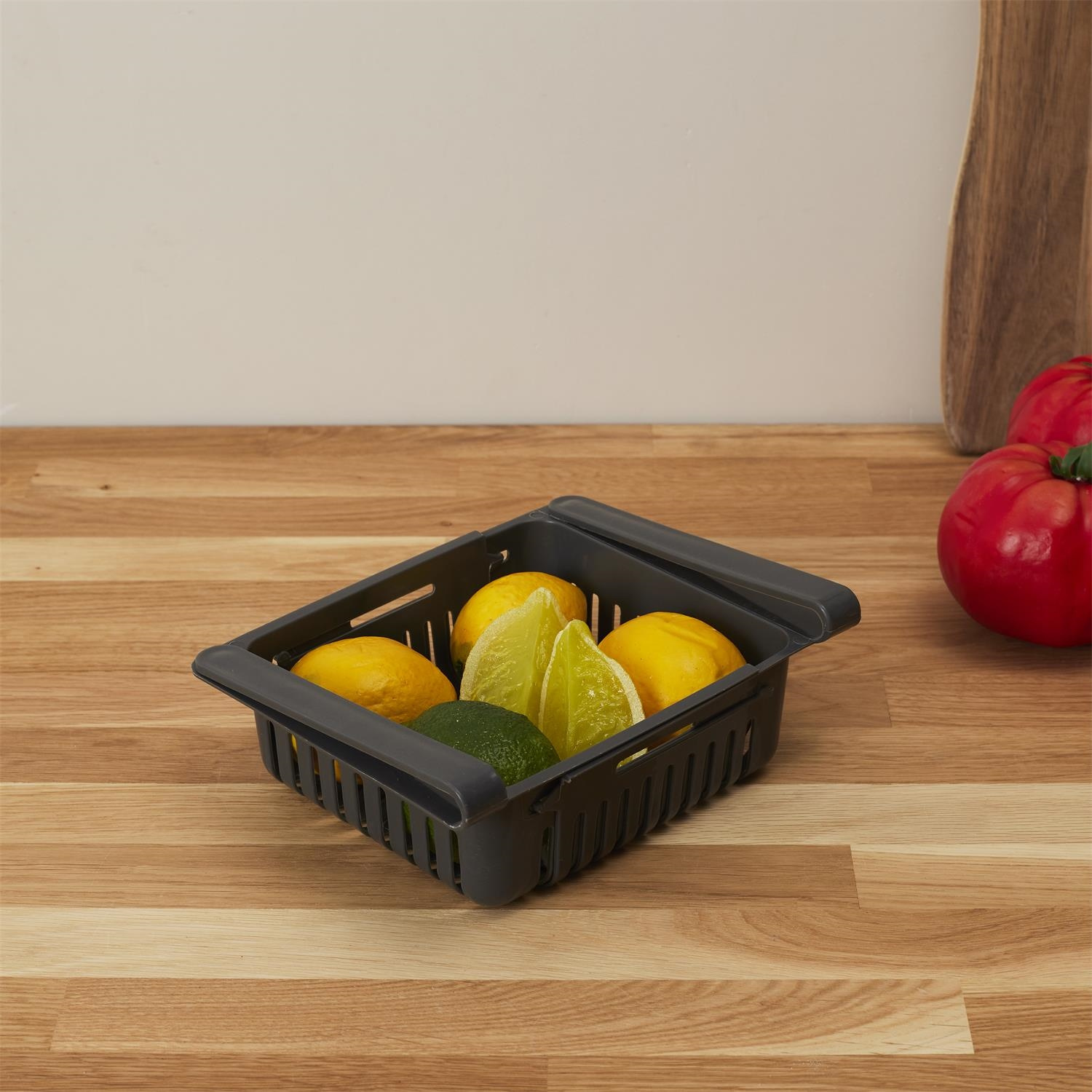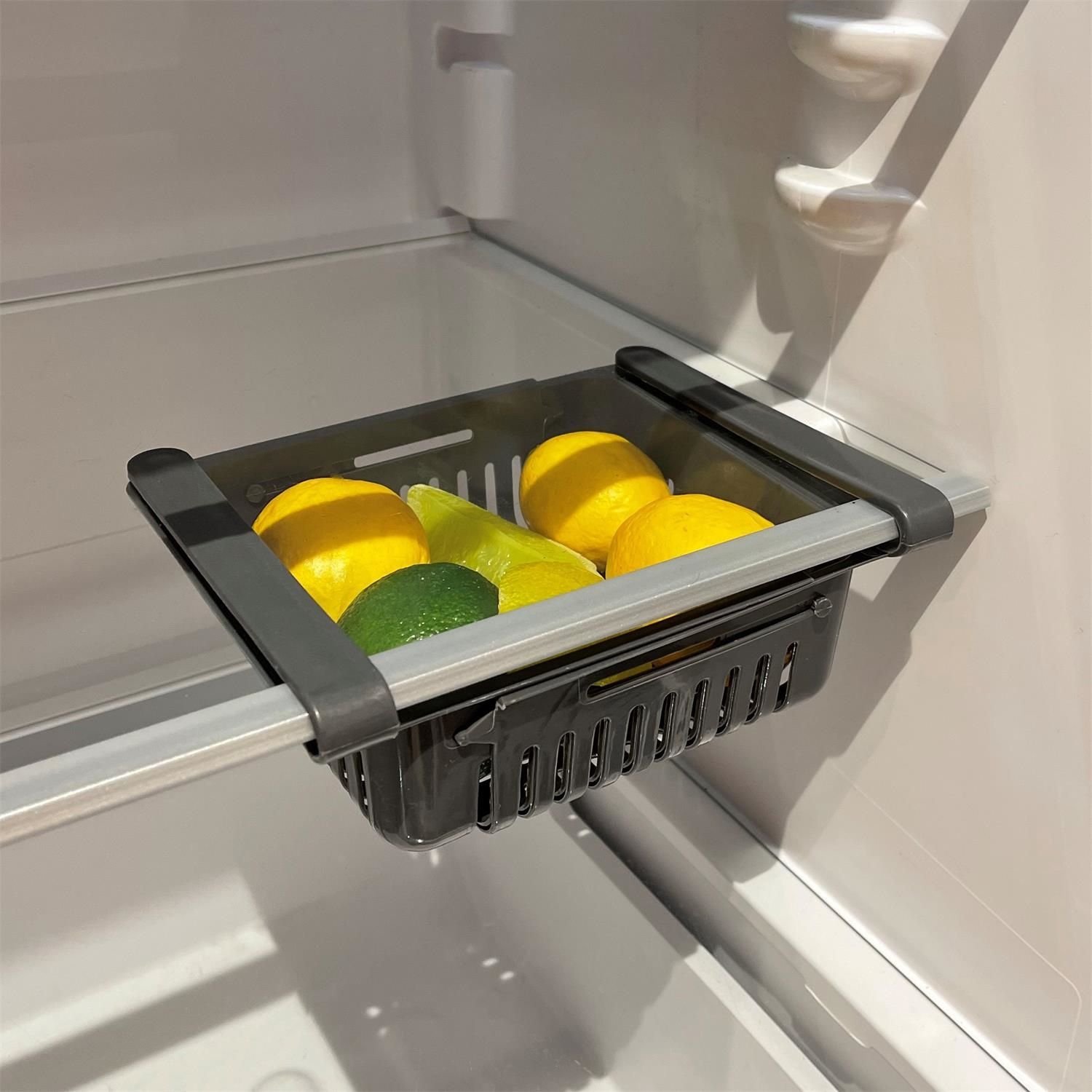 Podwieszana półka do lodówki z możliwością dopasowania jej szerokości do naszych potrzeb. Półka posiada regulację szerokości od 14 do 24cm. Możemy w niej przechowywać nawet warzywa i owoce, gdyż półka jest ażurowa co sprzyj cyrkulacji powietrza w niej. Półka wykonana z polipropylenu