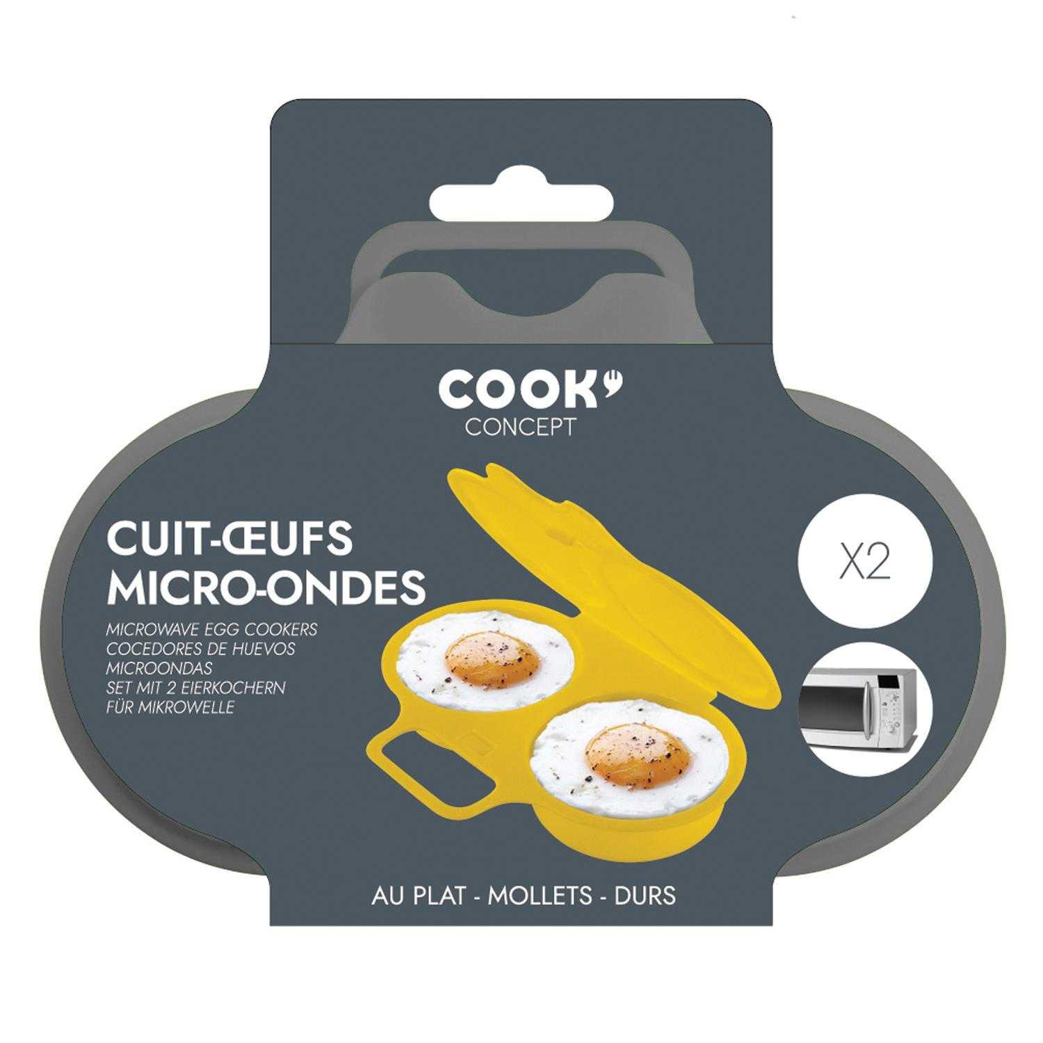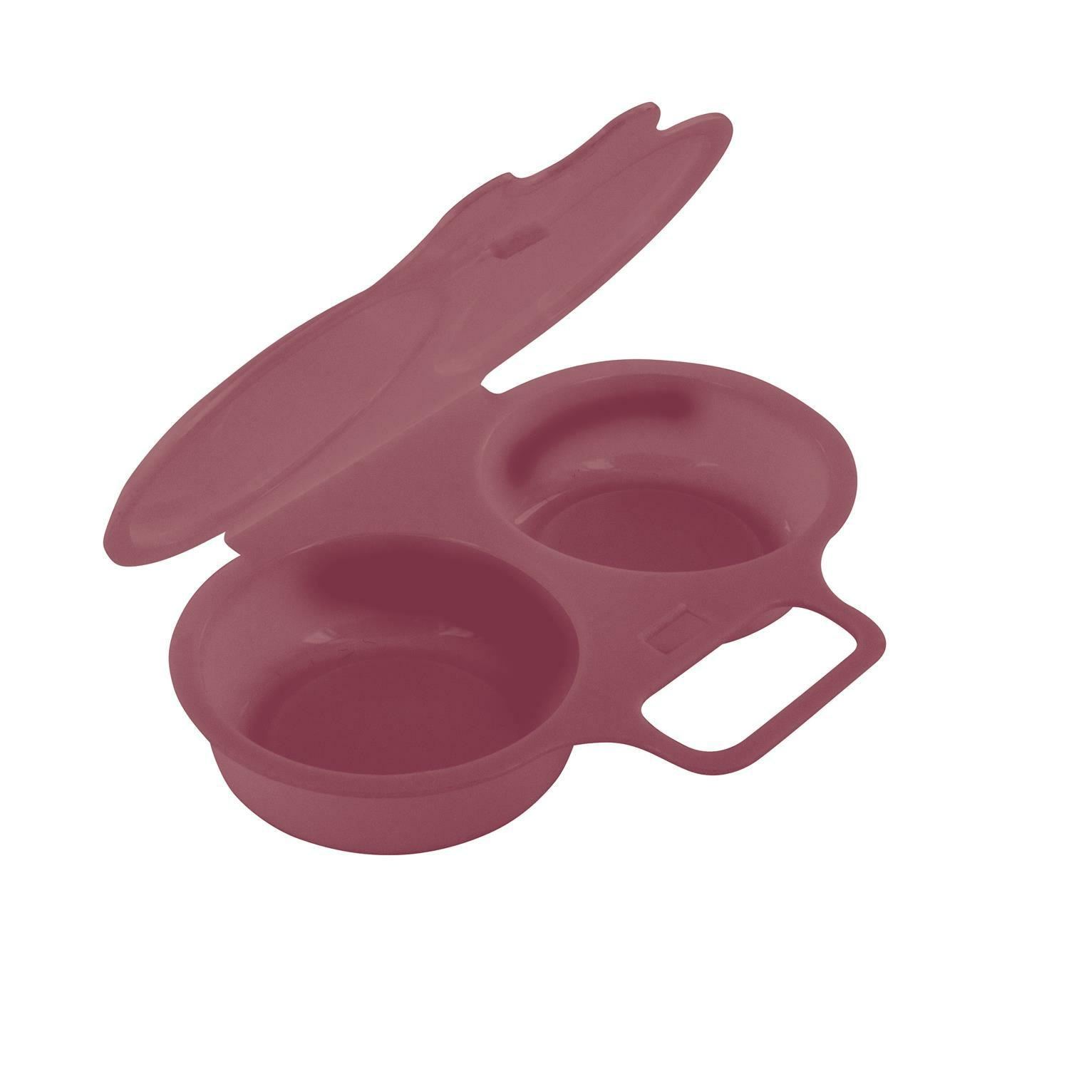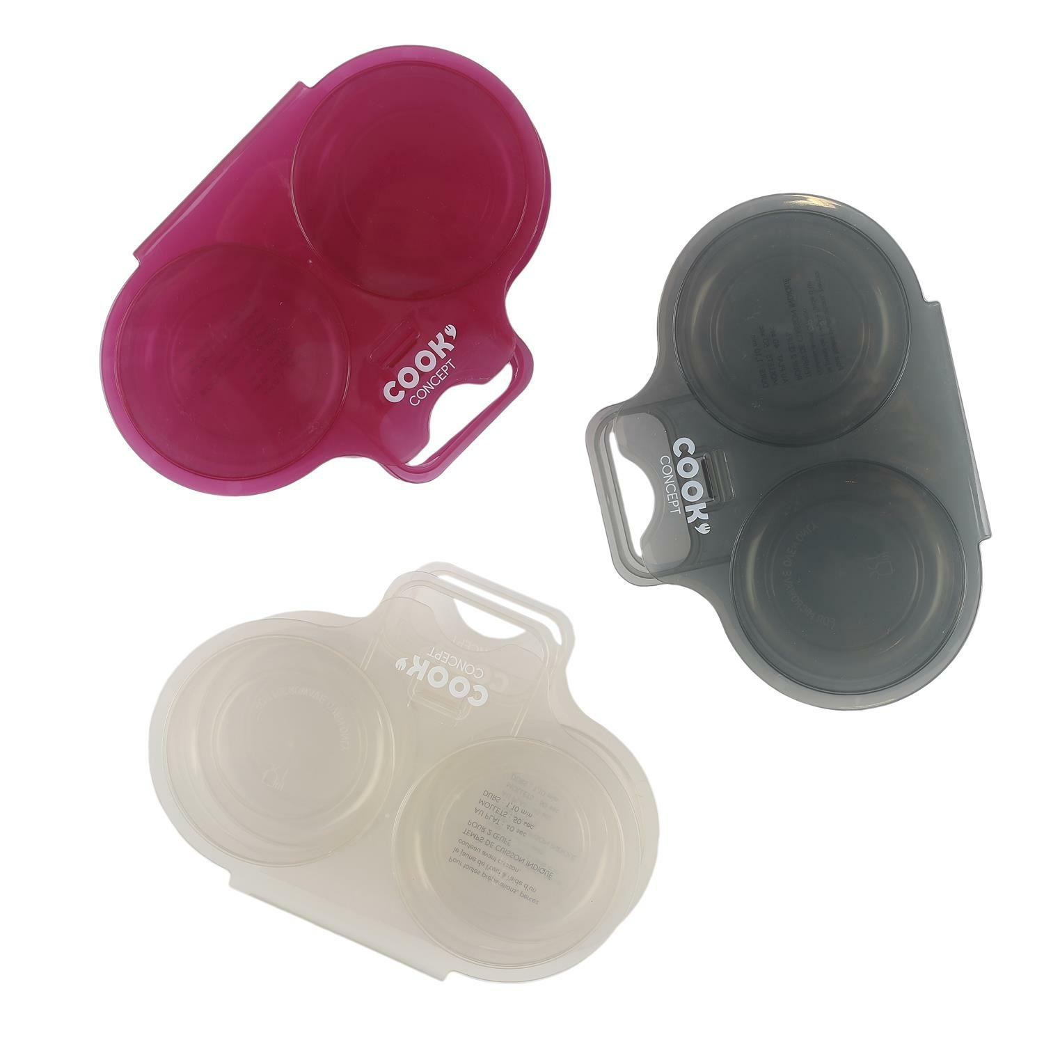 Dzięki temu pojemnikowi z silikonu łatwo ugotujesz jajko sadzone w mikrofalówce. Pjemnik wyposazony w dwie przegródki na jajka. Wystarczy wbić jajka i wstawić do kuchenki. Łatwy sposób na podanie równych, dobrze ugotowanych jajek.Cechy produktu
