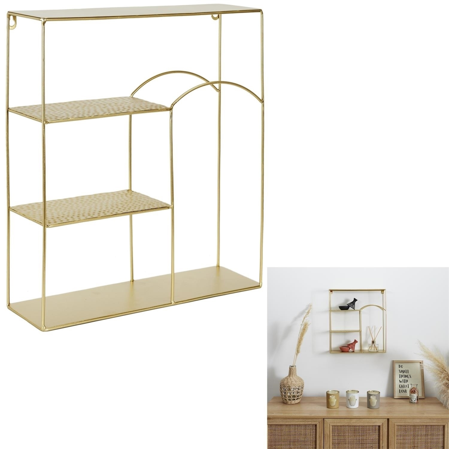 - Wykonana w całości z metalu półka o nietypowym kształcie doda charakteru wnętrzu i pozwoli na przechowywanie w ciekawy sposób roślin, książek lub figurek. Półka w całości wykonana zmetalu, została polakierowana na kolor złoty. Wymiary kartonu: 41,5x47x50c