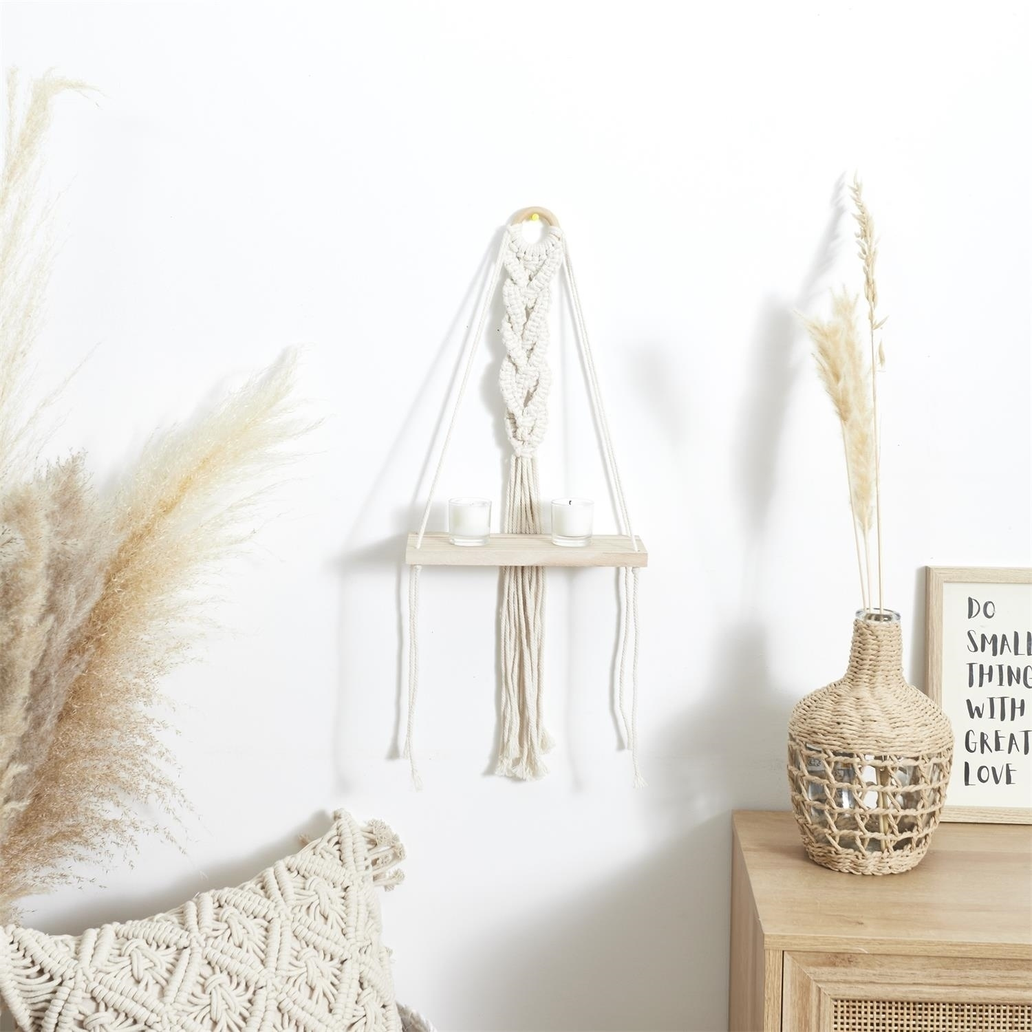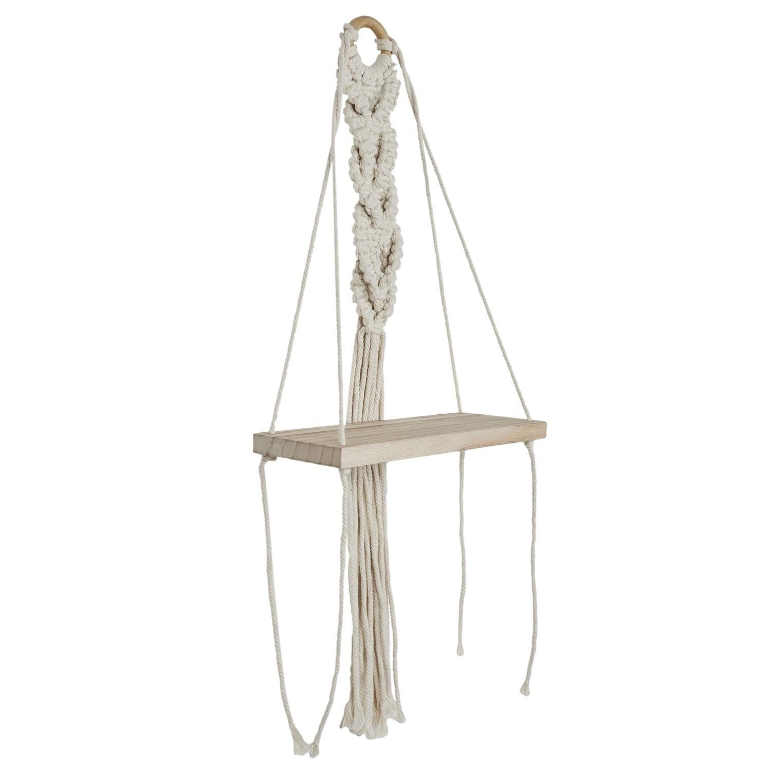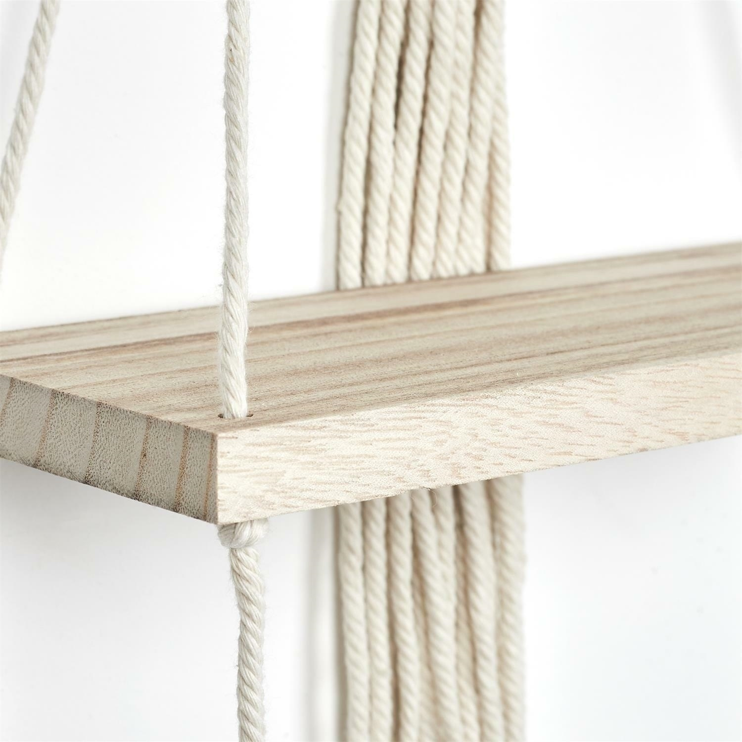 Półka Boho to połączeni bawełnianej, plecionej konstrukcji z sosnowymi półkami. Pleciona w stylu macramy półka sprawdzi się w naturalnym, jasnym wnętrzu. Max obciążenie: 5kgCechy produktu