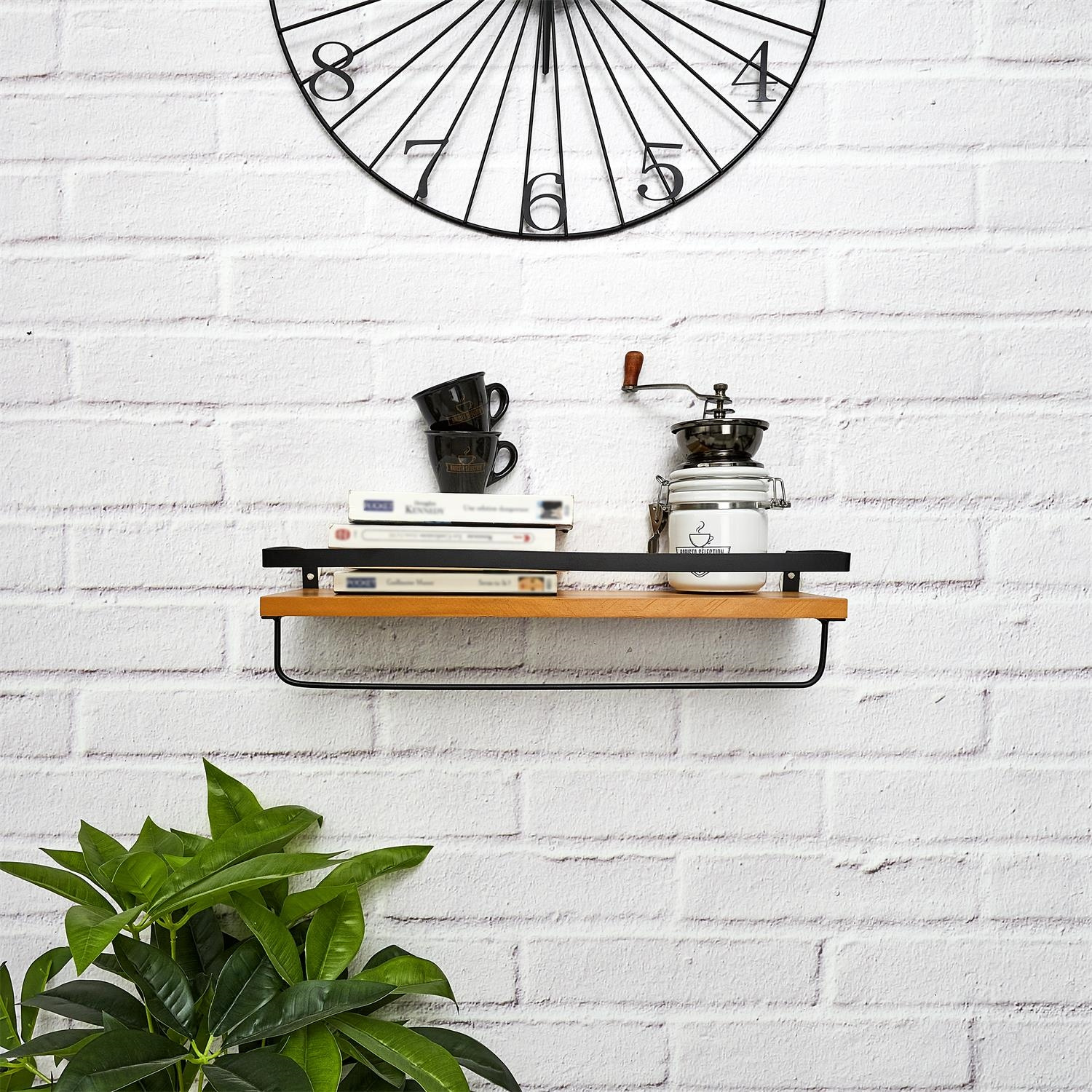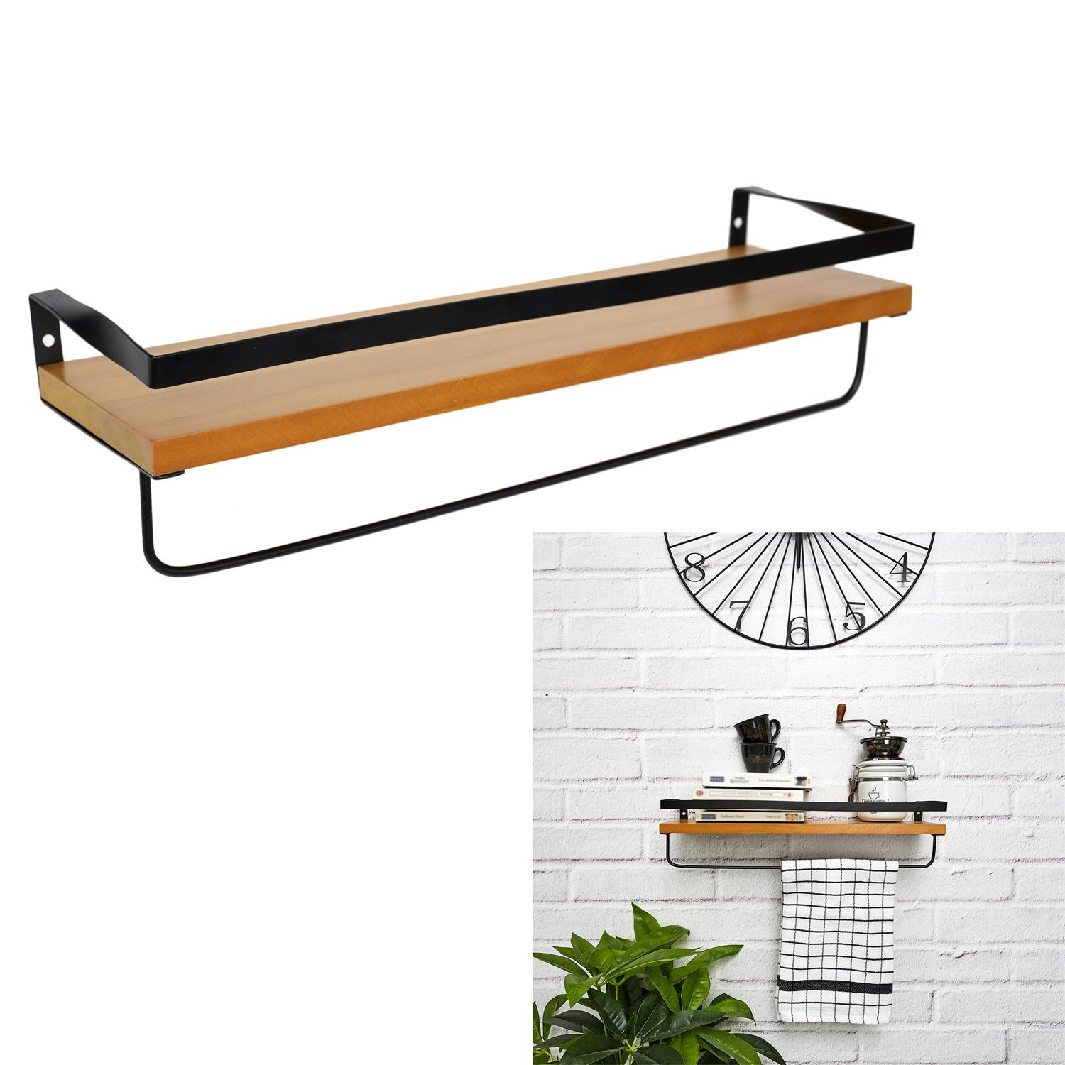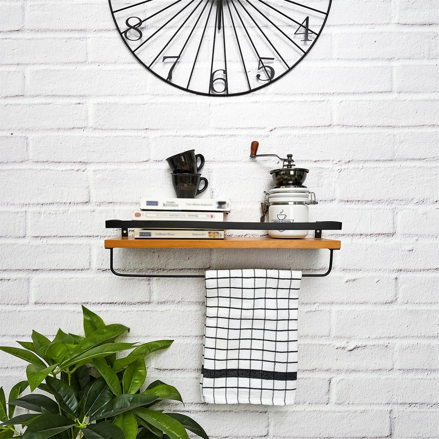 Półka kuchenna z miejscem na przyprawy, oliwy lub produkty sypkie wyposazona została w poprzeczkę na której możemy powiesić ściereczkę. Sosnowa półka została polakierowana. Metalowe, czarne elementy półki dzięi lakierowaniu proszkowemu są wytrzymałe na wytarcia i odpryski. Max. obciążenie półki 3kg. Wymiary kartonu: 39,5x32x49,5cm, Max 6 szt w kartonieCechy produktu