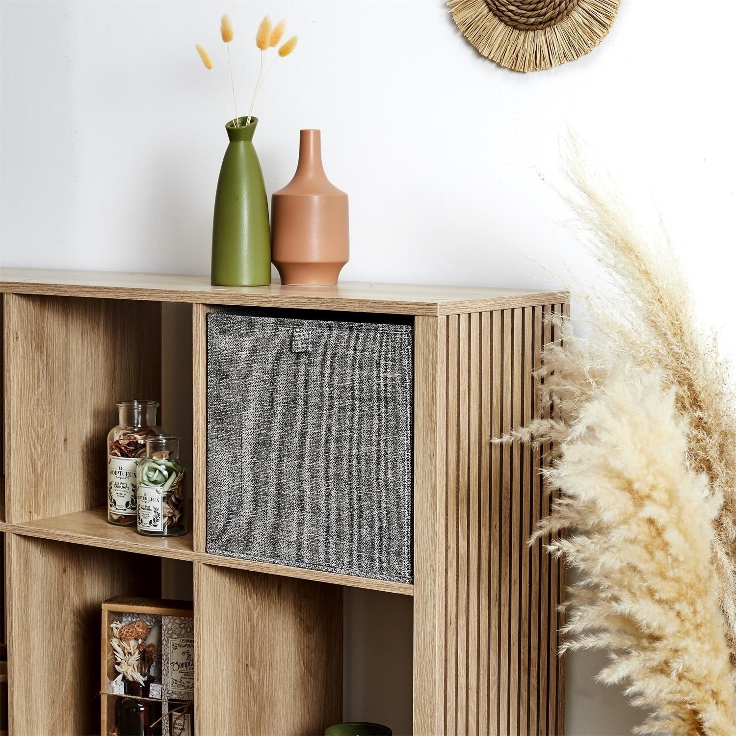 Pudełko o wymiarach 30x30x30cm to idealne dopełnienie regałów Kali rób innych mebli kubików. Pudełko wykonane zostało z połączenia szkieletu z plastiku i tektury oraz z poliestrowej tkaniny na zewnątrz. Pudełko gdy nie używamy możemy złożyć. kompatybilne z wieloma regałami.Cechy produktu