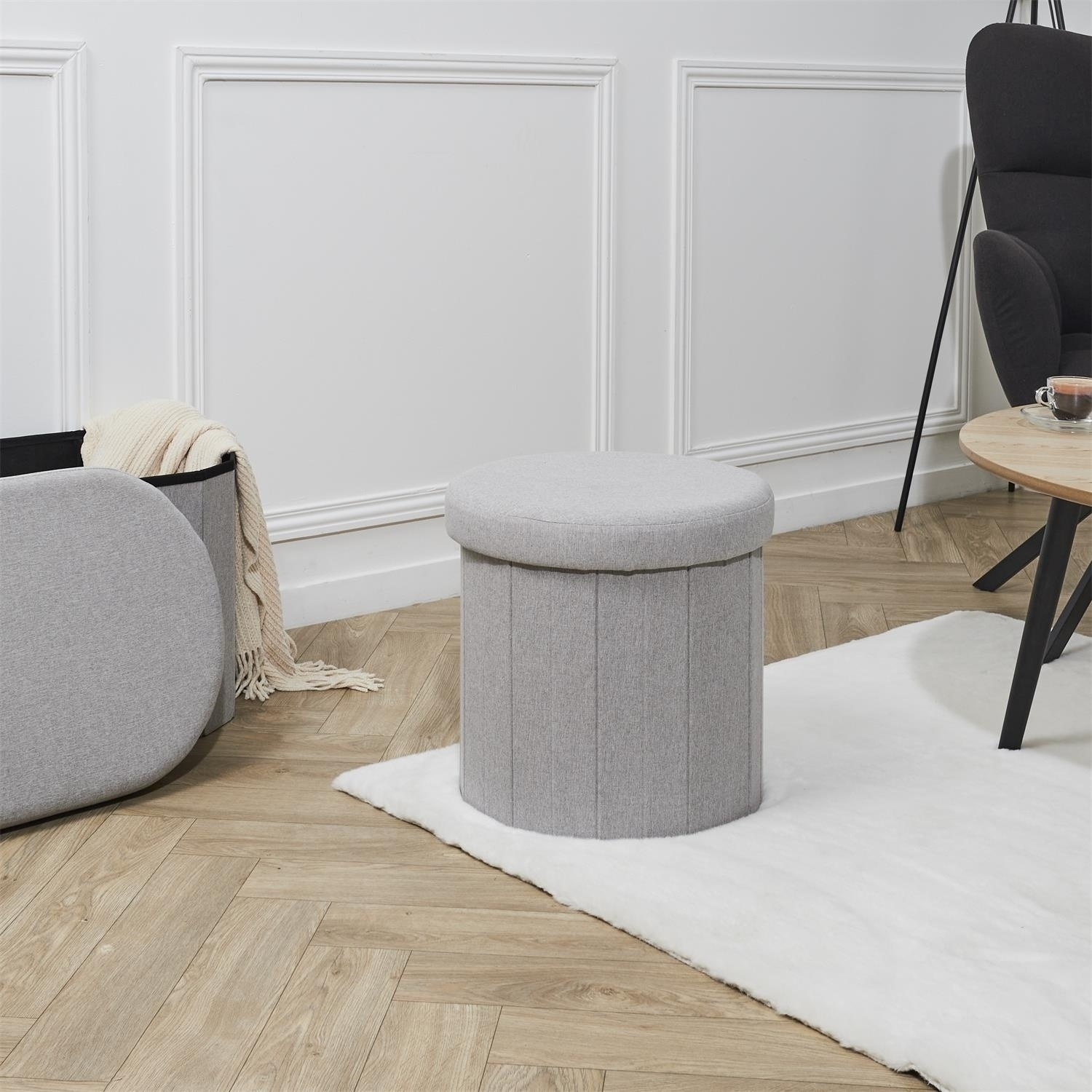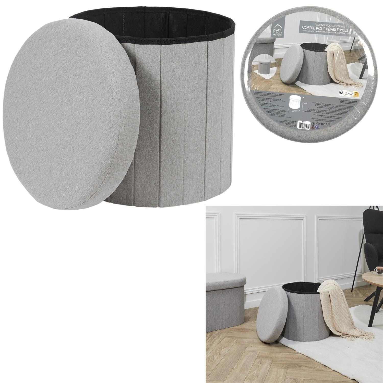 Składana pufa to idealny mebel do niedużego przedpokoju. Stołek pełni funkcję nie tylko siedziska, ale również pojemnika na buty, akcesoria, koce lub poduszki a nawet zabawki. Dzięki otwieranemu siedzisku do środka pufy możemy schować przedmioty, których obecność na wierzchu nie jest potrzebna. Składana pufa wykonana została z MDF, pianki tapicerskiej oraz tkaniny 100% poliester. Składana pdstawa pozwala schowaćpufę, gdy tymczasowo nie potrzebujemy jej używać.Cechy produktu