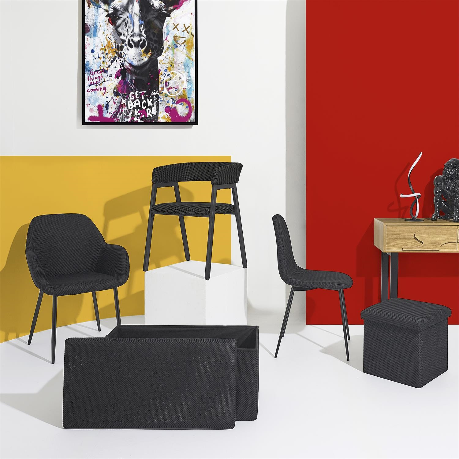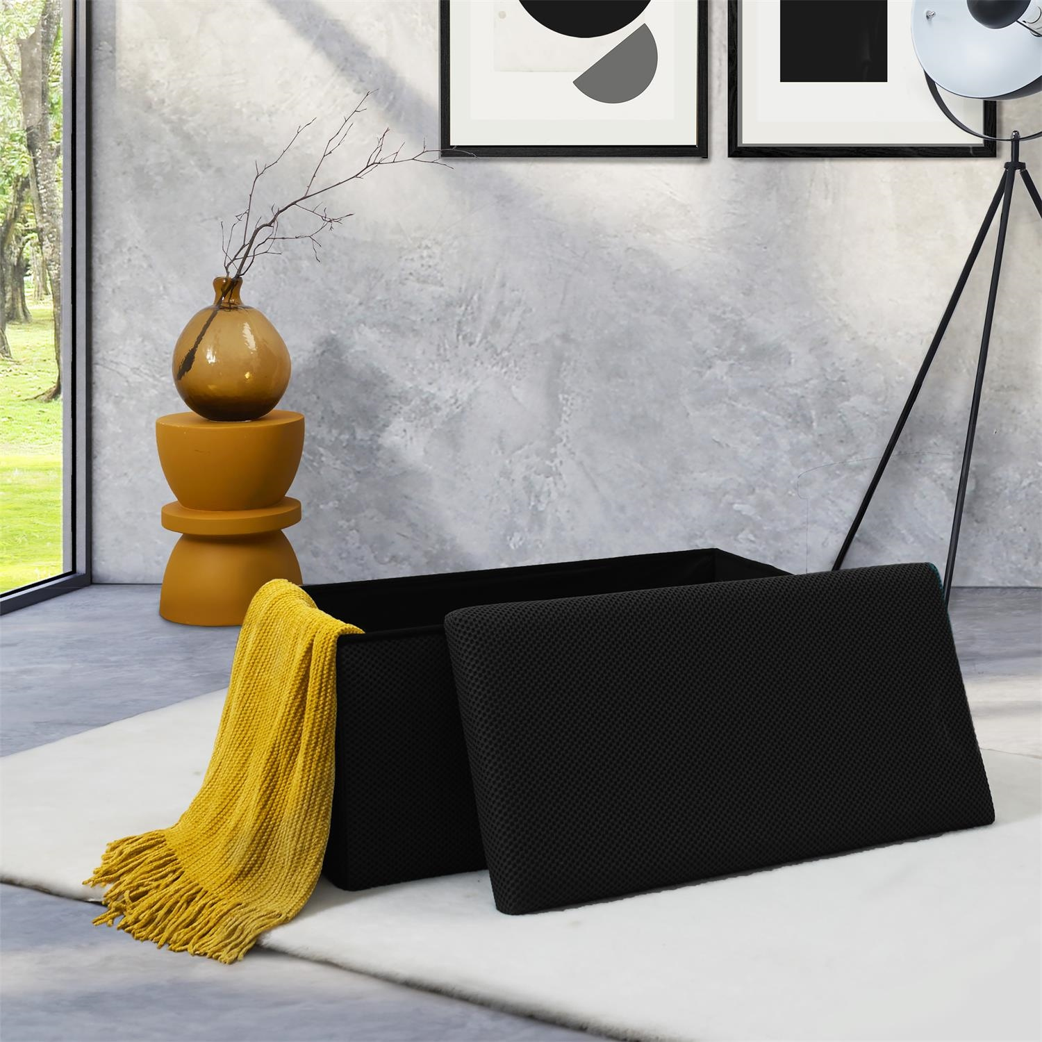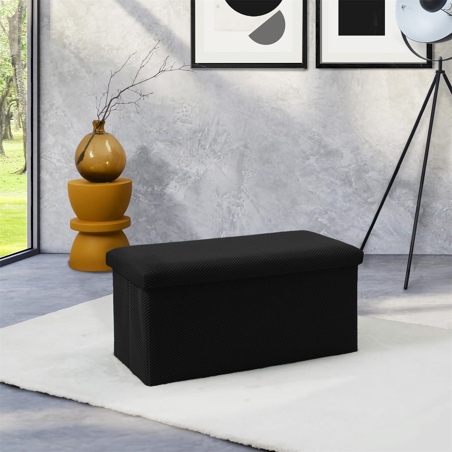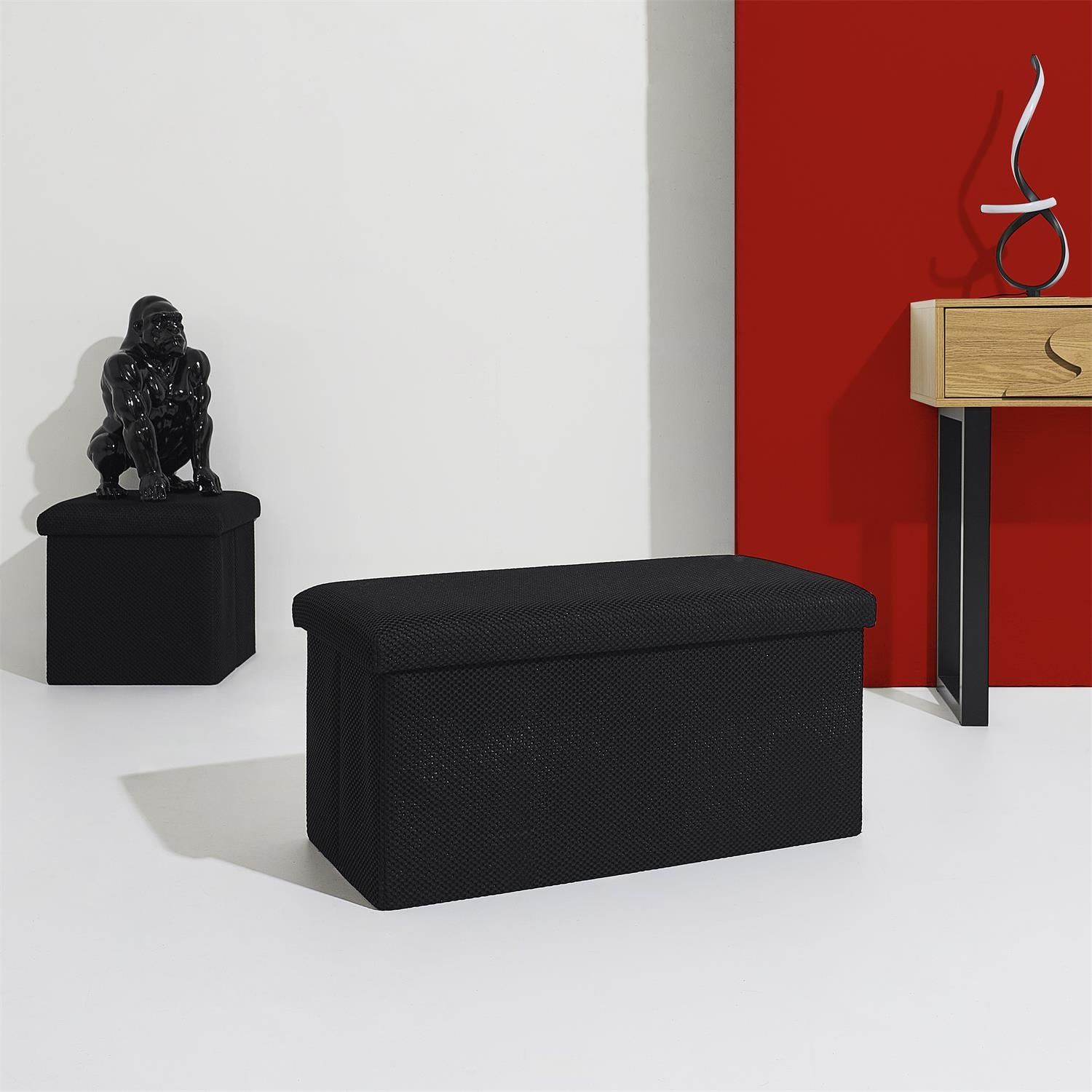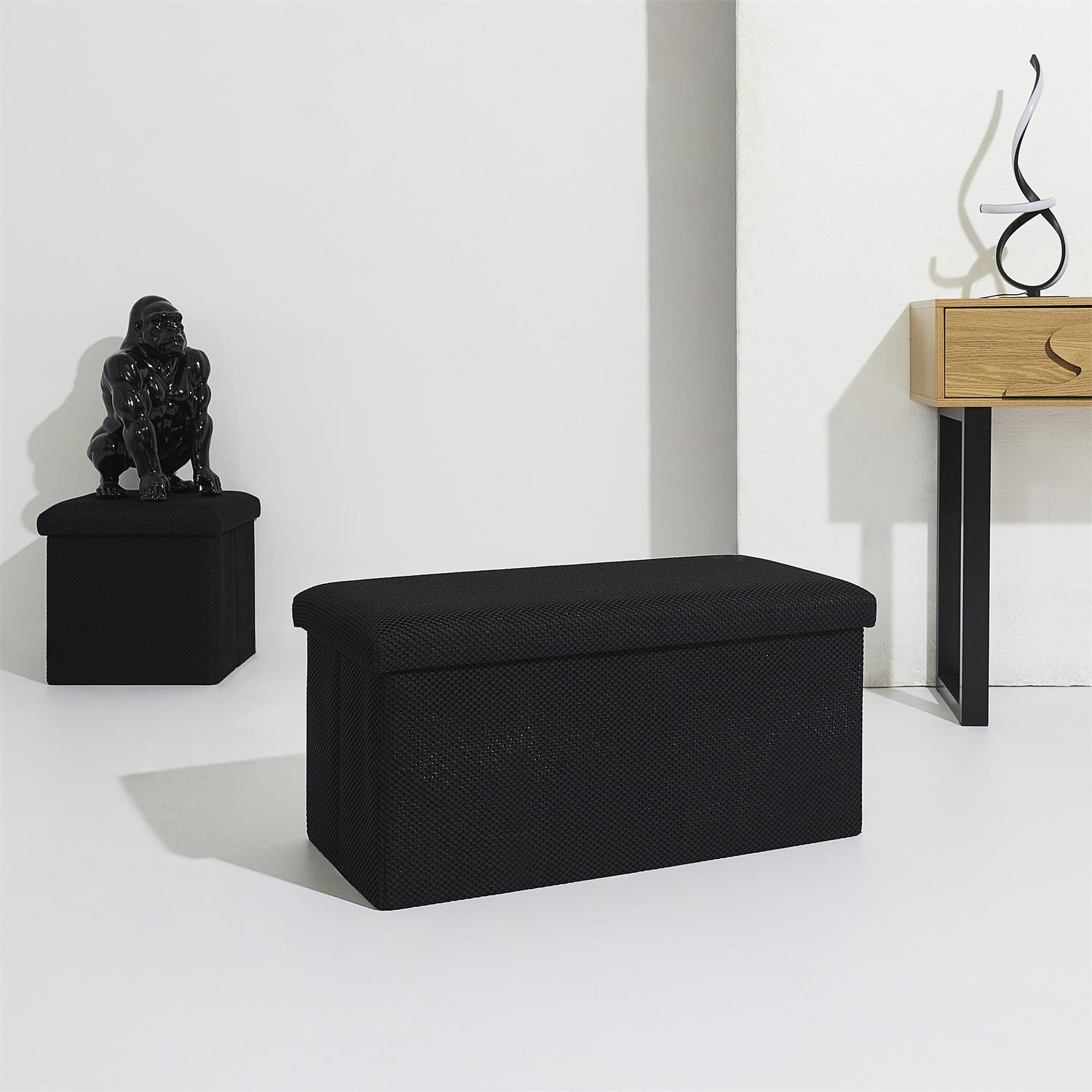 Składana pufa ze schowkiem to must have każdego mieszkania studenta lub osób, które potrzebują dodatkowego siedziska oraz miejsca do przechowywania. Pufa wykonana ze stelaża z wytrzymałej płyty MDF, która gwarantuje maksymalne dopuszczalne obciążenie mebla aż do 110kg. Pufę można złożyć gdy jej nie używamy. Po rozłożeniu natomiast daje nam sporo miejsca do przechowywania zarówno mniejszych rzeczy jak i sporych takich jak koce, buty lub książki. Pufa ozdobiona została ciekawą trójwymiarową tkaniną. Tkanina 100% poliester.Cechy produktu