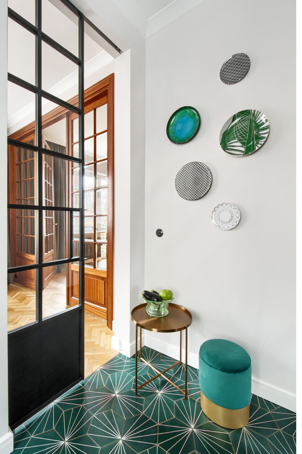 - Jest ono tapicerowane miękkim welurem w głębokim odcieniu mięty.