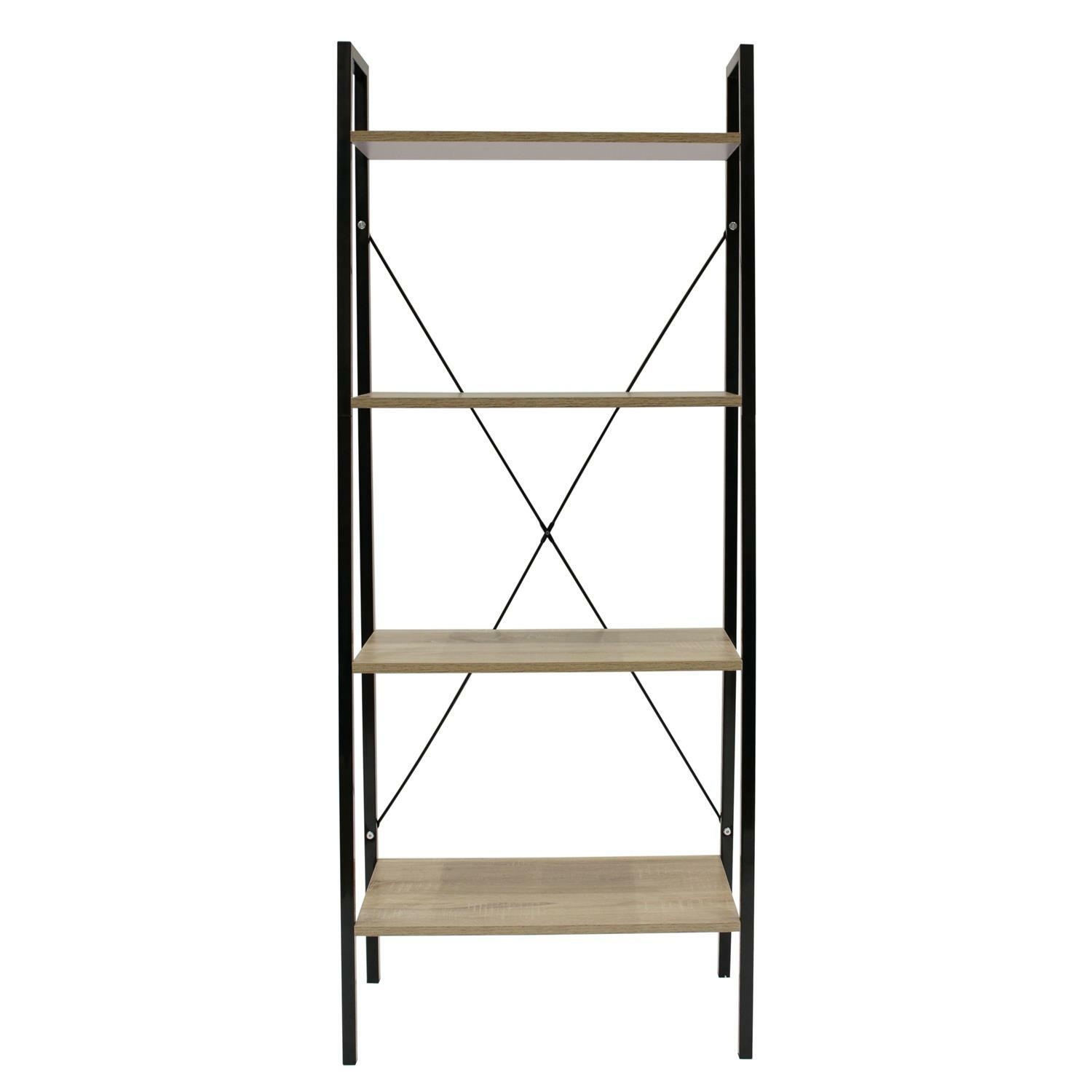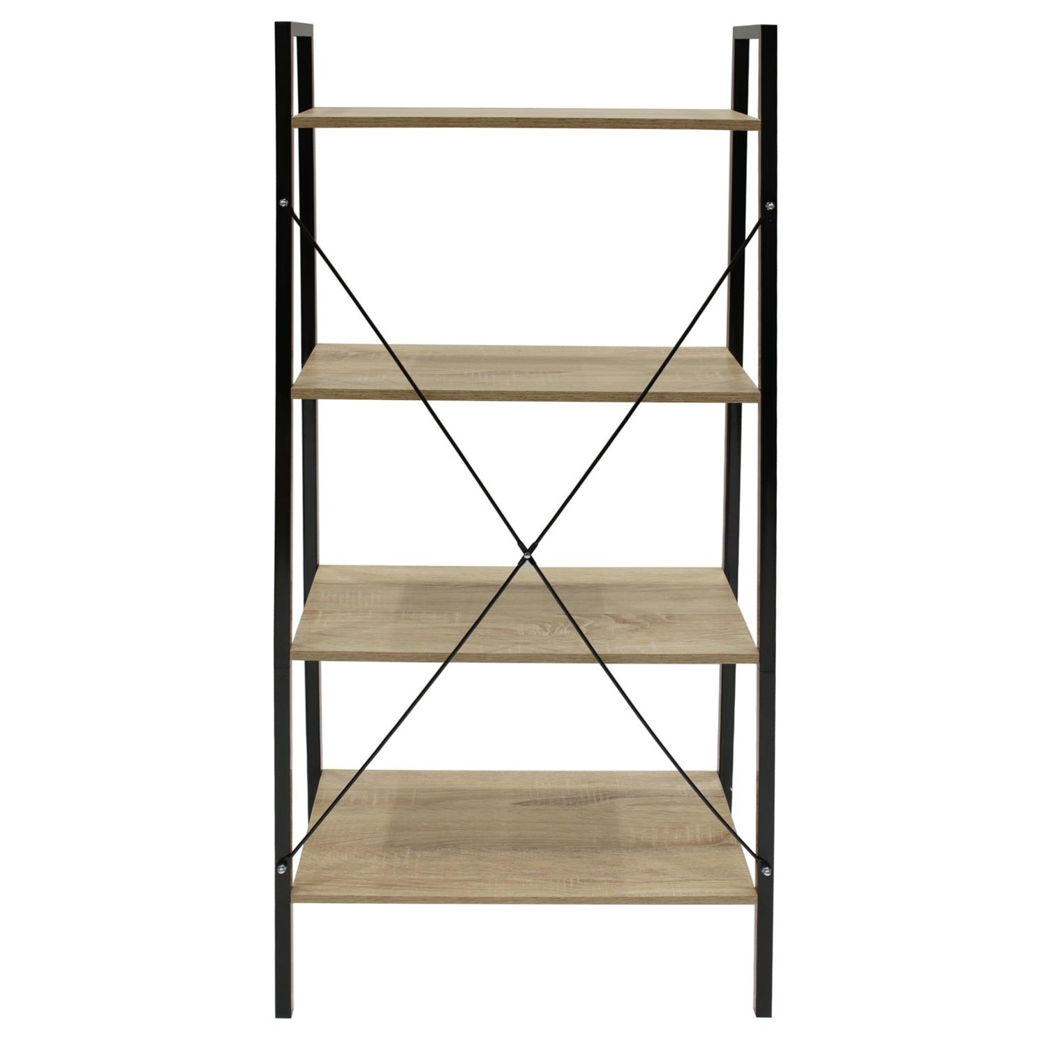 Regał Cilyan to wyjątkowy mebel do nowoczesnych i loftowych pomieszczeń. Regał, dzięki połączeniu czarnego koloru oraz koloru jasnego dębu, prezentuje się wyjątkowo lekko i zgrabnie. Proszkowo pomalowana na czarno rama mebla charakteryzuje się dużą trwałością, odpornością na korozję, wysoką temperaturę oraz uszkodzenia mechaniczne, dzięki czemu znacznie podnosi walory użytkowe i estetyczne mebla. Z kolei cztery półki to wysokogatunkowa płyta MDF pokryta laminatem imitującym drewno, dzięki czemu powierzchnie półek są gładkie i wytrzymałe. Prosta konstrukcja wsparta została stalowymi prętami, które prócz funkcji wspornika są również ciekawym elementem dekoracyjnym. Max. obciążenie na jedną półkę: 12 kgCechy produktu
