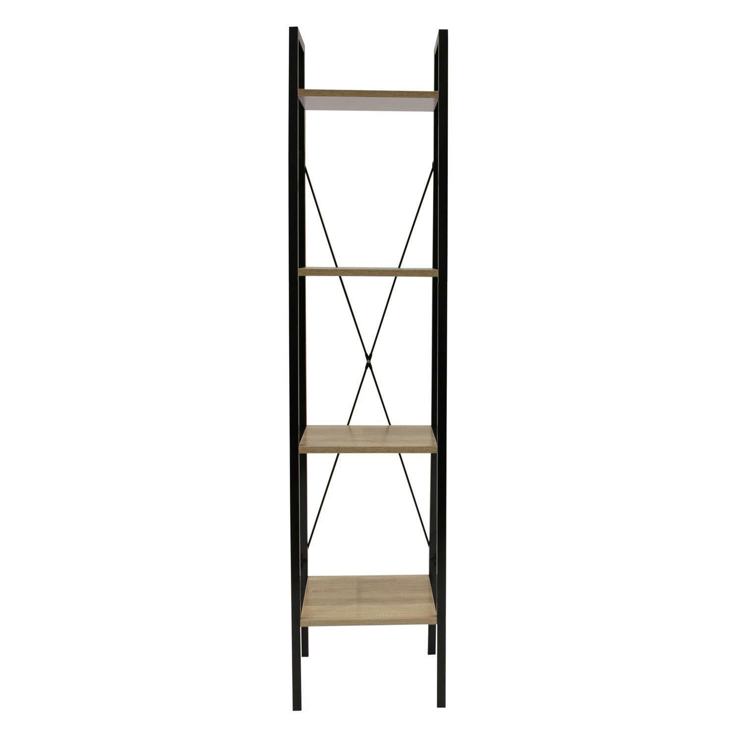 Regał Cilyan to wyjątkowy mebel do nowoczesnych i loftowych pomieszczeń. Regał, dzięki połączeniu czarnego koloru oraz koloru jasnego dębu, prezentuje się wyjątkowo lekko i zgrabnie. Proszkowo pomalowana na czarno rama mebla charakteryzuje się dużą trwałością, odpornością na korozję, wysoką temperaturę oraz uszkodzenia mechaniczne, dzięki czemu znacznie podnosi walory użytkowe i estetyczne mebla. Z kolei cztery półki to wysokogatunkowa płyta MDF pokryta laminatem imitującym drewno, dzięki czemu powierzchnie półek są gładkie i wytrzymałe. Prosta konstrukcja wsparta została stalowymi prętami, które prócz funkcji wspornika są również ciekawym elementem dekoracyjnym. Max. obciążenie na jedną półkę: 6 kg Waga regału: 5,7kgCechy produktu