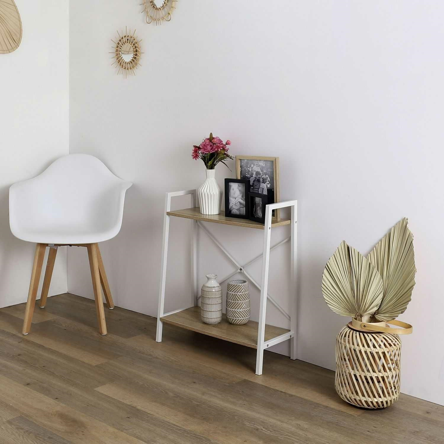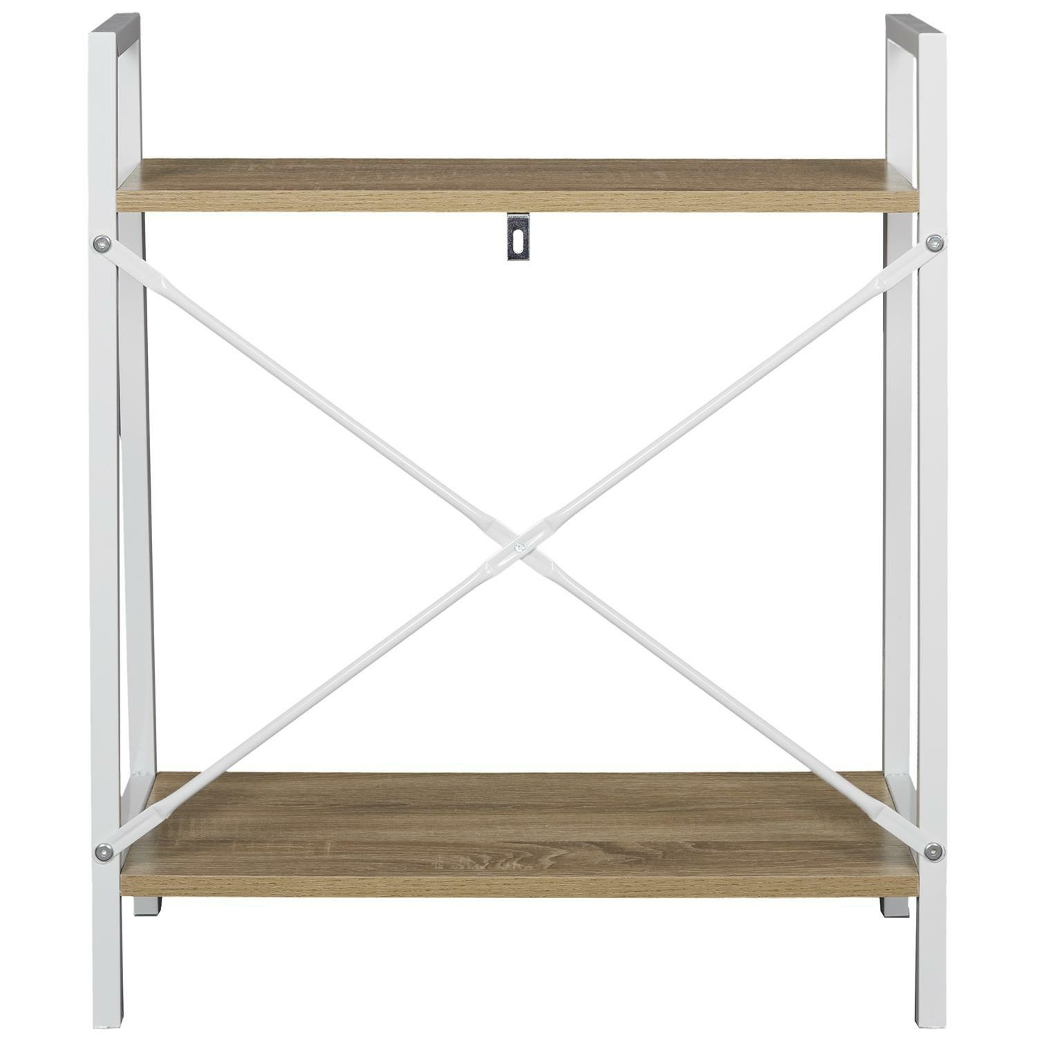 Regał Cilyan to wyjątkowy mebel do nowoczesnych i loftowych pomieszczeń. Regał, dzięki połączeniu białego koloru oraz koloru jasnego dębu, prezentuje się wyjątkowo lekko i zgrabnie. Proszkowo pomalowana na czarno rama mebla charakteryzuje się dużą trwałością, odpornością na korozję, wysoką temperaturę oraz uszkodzenia mechaniczne, dzięki czemu znacznie podnosi walory użytkowe i estetyczne mebla. Z kolei dwie półki to wysokogatunkowa płyta MDF pokryta laminatem imitującym drewno, dzięki czemu powierzchnie półek są gładkie i wytrzymałe. Prosta konstrukcja wsparta została stalowymi prętami, które prócz funkcji wspornika są również ciekawym elementem dekoracyjnym. Cilyan może pełnić funkcje szafki nocnej, półki na buty lub regału w biurze. Max. obciążenie na jedną półkę: 10 kg Odległość między półkami: 46cm Wymiary półek Cilyan S, Szerokość 55cm, głębokość: górna: 22cm, dolna: 26cm Wymiary opakowania: 5,5x50x74 cmCechy produktu