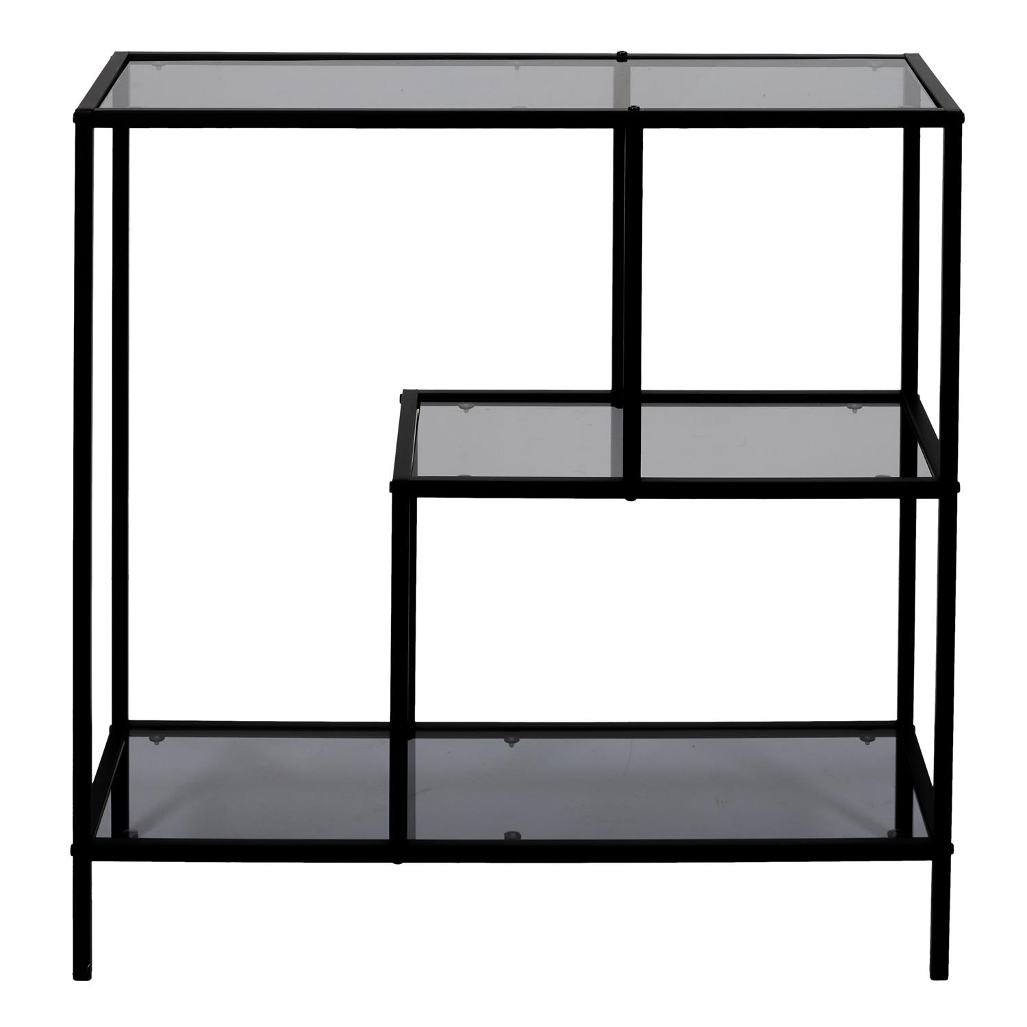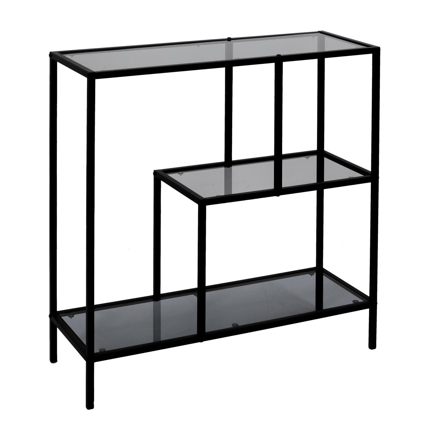Regał Edison to połączenie czarnej metalowej konstrukcji ze szklanymi półkami o dymionym odcieniu. Hartowane szkło półek regału jest nie tylko bezpiecznym mateirałem ale również łatwym w utrzymaniu w czystości. Regał o niesymetrycznej budowie jest nie tylko dobrym miejscem na msiążki, pamiątki lub kwiaty. Sprawdzi się on również jako element oddzielający salon od jadalni w niedużym wnętrzu. Regał wymaga samodzielnego montażu. Max obciążenie na 1 półkę 5kg. Wymiary kartonu: 37x14x91,5cm. Waga regału 12kgCechy produktu