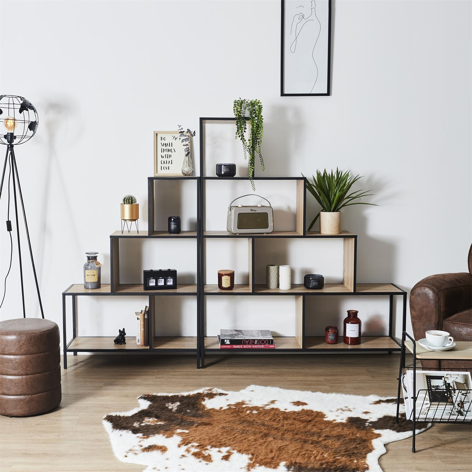 Regał schodkowy Edison naturalny/czarny