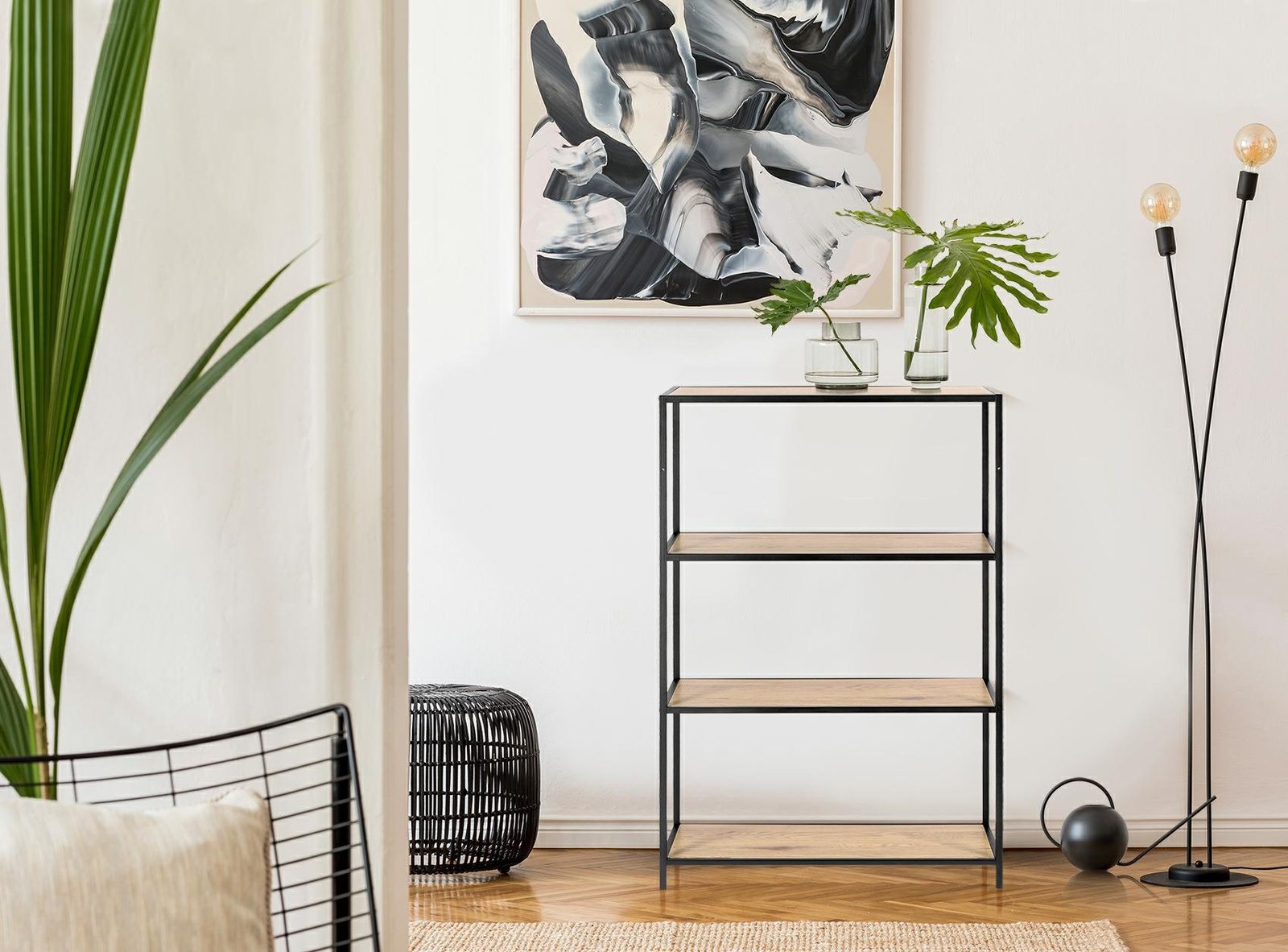 Regał Oxford I idealnie wkomponuje się w minimalistyczne oraz loftowe wnętrza. Półki wykonane zostały z płyty MDF wykończonej laminatem w kolorze dębu doskonale łączą sie z metalową ramą malowaną proszkowo na kolor czarny. Doskonale sprawdzą się w restauracji, hotelu czy salonie.Cechy produktu