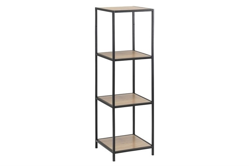 Regał Seaford VI wykonany został z metalu malowanego proszkowo oraz płyty MDF wykończonej laminatem w kolorze dębu.Cechy produktu