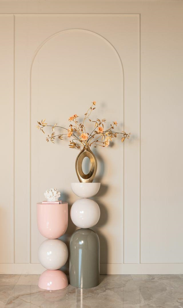 RICHMOND kolumna / stolik ALVA. Emanująca nowoczesnością kolumna o ciekawym kształcie, wykonana została w całości z metalu i wykończona w pięknej, pastelowej kolorystyce biało-różowej. Alva to wspaniały sposób na dodanie odrobiny luksusu oraz stylu do wnętrza. Idealnie się również sprawdzi w roli wyższego stolika lub w celu wyeksponowania dekoracji. Wymiary: wys. 82,5 cm / szer. 31 cm / gł. 31 cm Waga netto: 10 kg.Cechy produktu