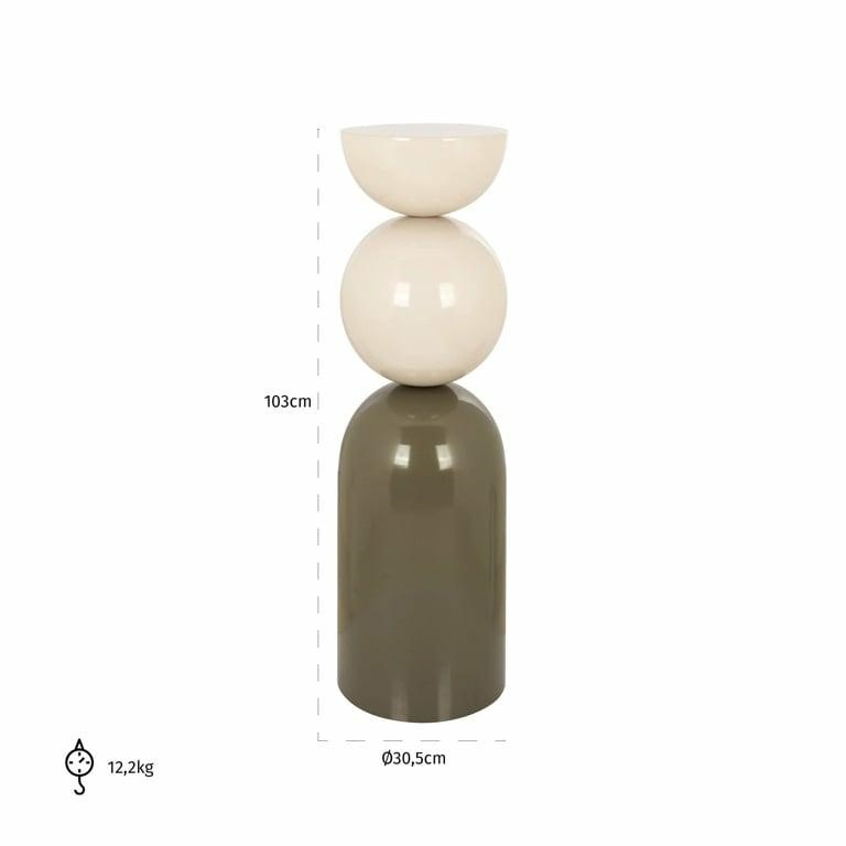 RICHMOND kolumna / stolik BISOU. Emanująca nowoczesnością kolumna o ciekawym kształcie, wykonana została w całości z metalu i wykończona w stonowanej kolorystyce białej i ciemnej zieleni. Bisou to wspaniały sposób na dodanie odrobiny luksusu oraz stylu do wnętrza. Idealnie się również sprawdzi w roli wyższego stolika lub w celu wyeksponowania dekoracji. Wymiary: wys. 103 cm / szer. 30,5 cm / gł. 30,5 cm Waga netto: 12,2 kg.Cechy produktu