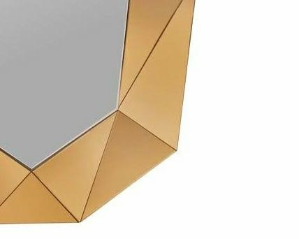 RICHMOND lustro ścienne JALOE. Lustro Jaloe zachwyca geometrycznym, nowoczesnym designem. Wykonane na solidnej ramie z MDF, lustro posiada eleganckie wykończenie w złotym odcieniu, nadając wnętrzu wyrafinowanego charakteru. Trójwymiarowa struktura ramy przywodzi na myśl oszlifowany klejnot, dodając efektowności i blasku. Doskonałe zarówno jako funkcjonalny dodatek, jak i dekoracja ścienna, która ożywi każde wnętrze, szczególnie w stylu Glamour lub nowoczesnym. Wymiary: wys. 120 cm / szer. 80 cm / gł. 4,5 cm Waga brutto: 19,1 kg.