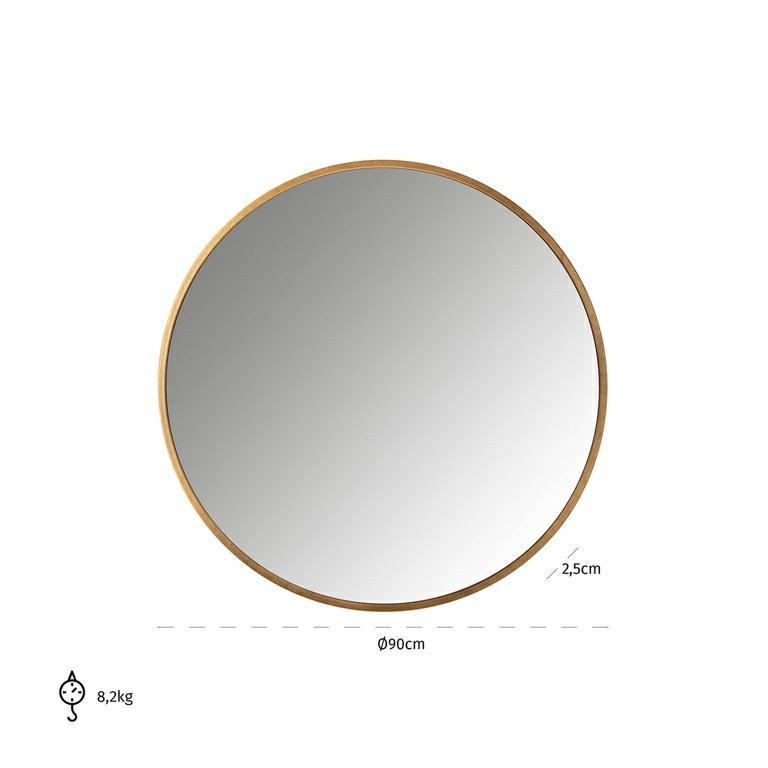 RICHMOND lustro ścienne MAESA 90 złote. Atrakcyjny design lustra Maevy przyciągnie uwagę każdego miłośnika klasycznego stylu. Wykonane zostało w wyniku połączenia metalu oraz płyty MDF, co nadaje mu wyjątkową odporność i solidność. Prezentowany styl Vintage jest bardzo uniwersalny, ponieważ doskonale łączy się z wszelkimi stylami dekoracyjnymi. Dzięki Maesa nadasz swojemu pomieszczeniu odrobinę charakteru oraz stworzysz przestrzeń, która wydaje się większa i promieniuje przytulnością. Dostępne również w innych wymiarach oraz w wersji z czarną ramą. Wymiary: wys. 90 cm / szer. 90 cm / gł. 2,2 cm Waga netto: 8,2 kg.Cechy produktu