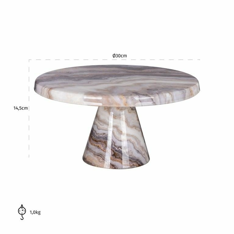 RICHMOND patera na ciasto ELOISE. Gustowna i elegancka patera na ciasto Eloise marki Richmond Interiors jest po prostu czymś pięknym. Całość wykonano z pięknego metalu imiutującego marmur. Eloise to marzenie wszystkich miłośników słodkości i tych, którzy uwielbiają otaczać się wspaniałymi przedmiotami. Wymiary: wys. 14 cm / szer. 30 cm / gł. 30 cm Waga brutto: 2,2 kg.Cechy produktu
