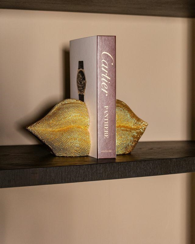 - RICHMOND podpórka do książek KISS złota. Kobieca, oryginalna podpórka do Twojej ulubionej książki. Główną ozdobą są tu biżuteryjnie wykonane usta z żywicy w eleganckiej złotej kolorystyce. Kiss to wspaniały pomysł na prezent dla miłośnika literatury, a ta