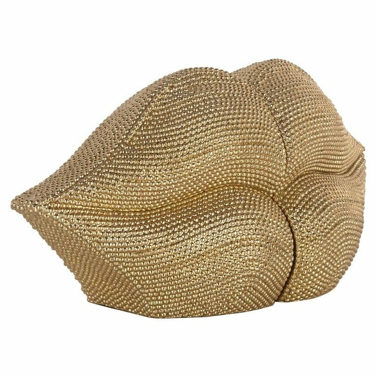 RICHMOND podpórka do książek KISS złota. Kobieca, oryginalna podpórka do Twojej ulubionej książki. Główną ozdobą są tu biżuteryjnie wykonane usta z żywicy w eleganckiej złotej kolorystyce. Kiss to wspaniały pomysł na prezent dla miłośnika literatury, a także forma ozdobienia wnętrza. Wymiary: wys. 13,5 cm / szer. 13 cm / gł. 9,5 cm Waga brutto: 1,8 kg.Cechy produktu