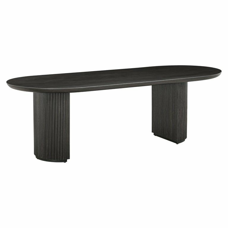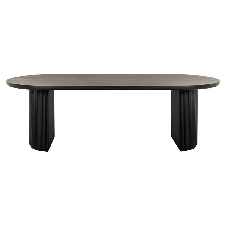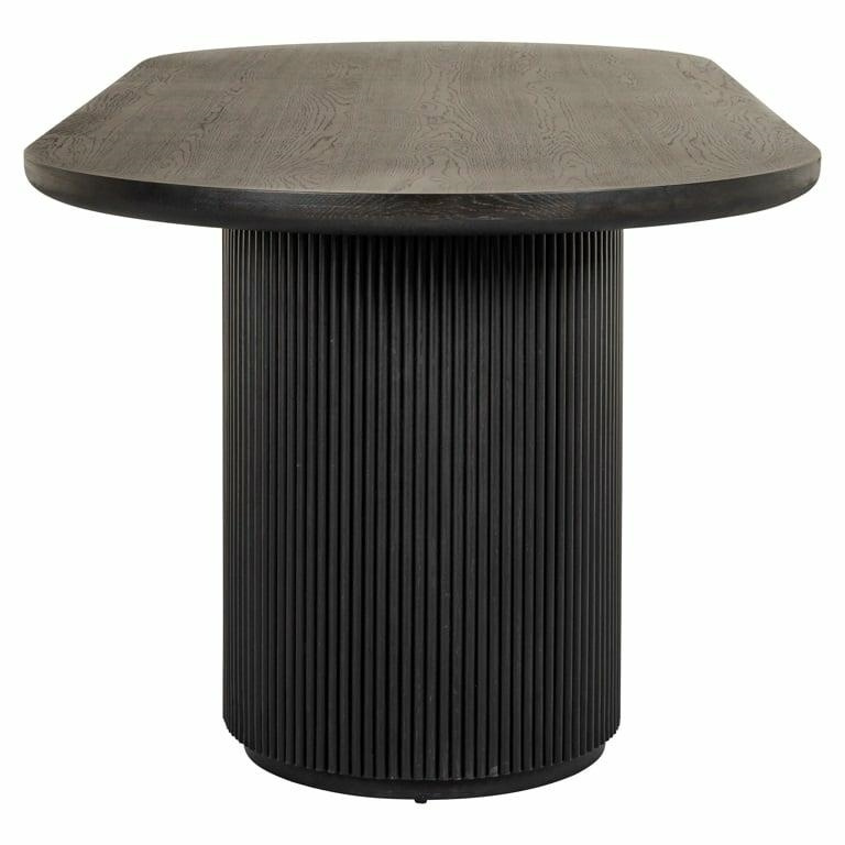 RICHMOND stół jadalniany KINGSTON 280 DARK COFFEE. Stoły jadalniane Kingston to kwintesencja elegancji i nowoczesności, wyróżniające się luksusowym wykończeniem i precyzyjnie zaprojektowaną formą. Wykonane z wysokiej jakości dębu, sklejki i forniru dębowego, z dodatkiem metalowych akcentów, emanują trwałością i wyrafinowaniem. Ich charakterystyczna podstawa z elementami imitującymi modne lamele nadaje im unikalny, stylowy wygląd, który doskonale wpisuje się we współczesne wnętrza. Stoły Kingston to ponadczasowy wybór, który sprawdzi się zarówno w klasycznych, jak i nowoczesnych aranżacjach. Dostępne są również w mniejszym rozmiarze oraz w brązowym wykończeniu, co pozwala na jeszcze większą personalizację wnętrza. Wymiary: wys. 76 cm / szer. 280 cm / gł. 100 cm Waga brutto: 110 kg.Cechy produktu