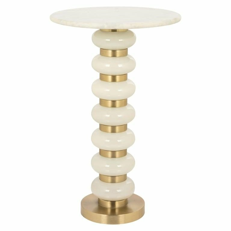 RICHMOND stolik BARBARA biały. Wyjątkowa propozycja stolika, która zachwyci każdego swoim pięknem i elegancją. Biżuteryjna biało-złota podstawa wykonana ze szkła i aluminium doda wnętrzu luksusowego charakteru i przyciągnie wzrok swoją wyrafinowaną estetyką. Luksusowy okrągły blat z białego marmuru wprowadzi do pomieszczenia element klasycznej elegancji. Stolik Barbara dostępny jest w różnych wersjach kolorystycznych oraz w niższej wersji, co pozwala dopasować go do różnorodnych aranżacji. To prawdziwa dekoracja w formie stolika, która stanowi uciechę dla oka i ozdobi każde wnętrze. Wymiary: wys. 62,5 cm / szer. 41 cm / gł. 41 cm. Waga brutto: 15,4 kg.Cechy produktu