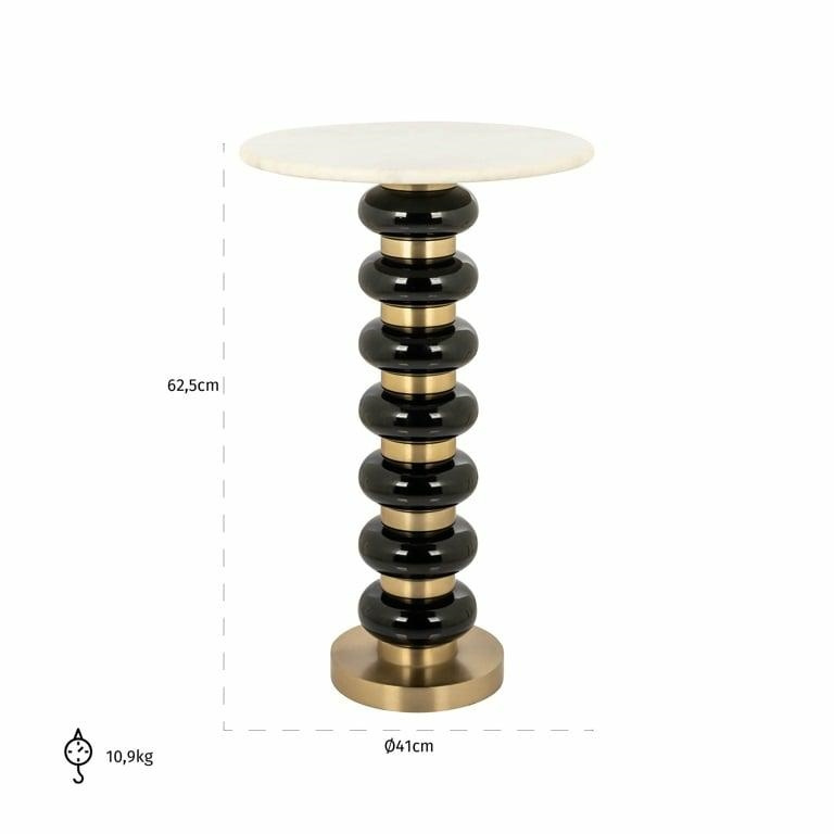RICHMOND stolik BARBARA czarny. Wyjątkowa propozycja stolika, która zachwyci każdego swoim pięknem i elegancją. Biżuteryjna złoto-czarna podstawa wykonana ze szkła i aluminium doda wnętrzu luksusowego charakteru i przyciągnie wzrok swoją wyrafinowaną estetyką. Luksusowy okrągły blat z białego marmuru wprowadzi do pomieszczenia element klasycznej elegancji. Stolik Barbara dostępny jest w różnych wersjach kolorystycznych oraz w niższej wersji, co pozwala dopasować go do różnorodnych aranżacji. To prawdziwa dekoracja w formie stolika, która stanowi uciechę dla oka i ozdobi każde wnętrze. Wymiary: wys. 62,5 cm / szer. 41 cm / gł. 41 cm. Waga brutto: 15,4 kg.Cechy produktu