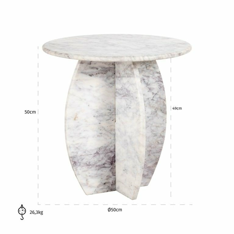RICHMOND stolik HOLMES 50. Kolekcja Holmes marki Richmond Interiors wyróżnia eleganckie oraz ponadczasowe wzornictwo. Wykonana jest w całości z pięknego, jasnego marmuru. Marmur jest trwałym rodzajem kamienia, który cechuje luksusowy i stylowy wygląd. Ten rodzaj kamienia jest produktem naturalnym i charakteryzuje się unikalnym wykończeniem. Tak więc wybierając produkt z użyciem marmuru, otrzymujesz coś naprawdę wyjątkowego w swoim domu. Wymiary: wys. 52 cm / szer. 50 cm / gł. 50 cm. Waga brutto: 35 kg.Cechy produktu