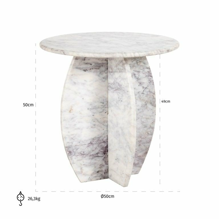 RICHMOND stolik HOLMES 50. Kolekcja Holmes marki Richmond Interiors wyróżnia eleganckie oraz ponadczasowe wzornictwo. Wykonana jest w całości z pięknego, jasnego marmuru oraz MDF. Marmur jest trwałym rodzajem kamienia, który cechuje luksusowy i stylowy wygląd. Ten rodzaj kamienia jest produktem naturalnym i charakteryzuje się unikalnym wykończeniem. Tak więc wybierając produkt z użyciem marmuru, otrzymujesz coś naprawdę wyjątkowego w swoim domu. Wymiary: wys. 52 cm / szer. 50 cm / gł. 50 cm. Waga brutto: 35 kg.Cechy produktu
