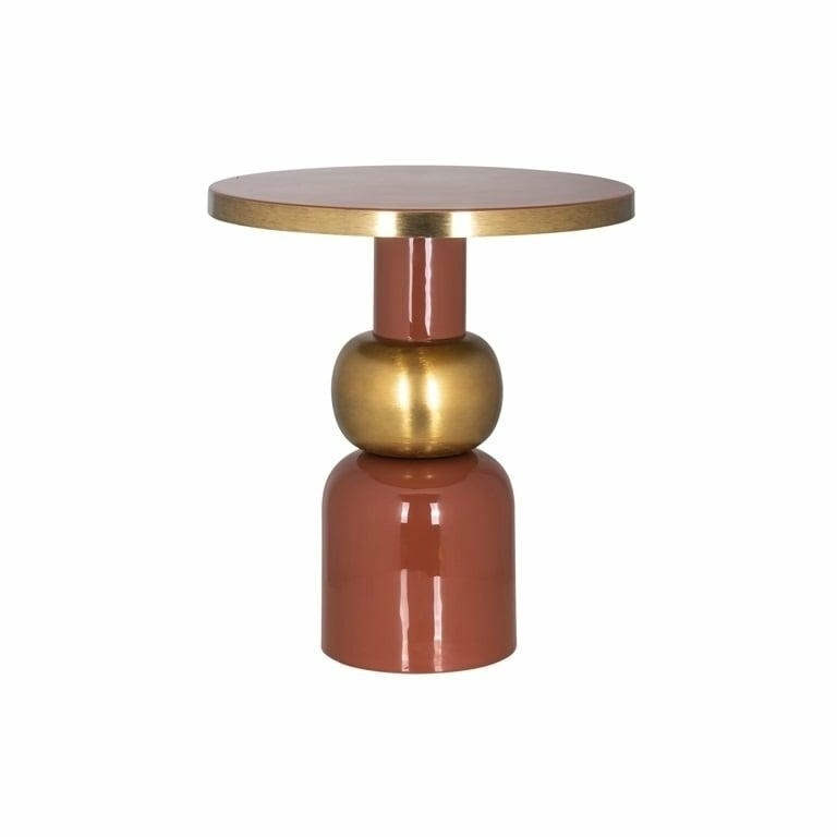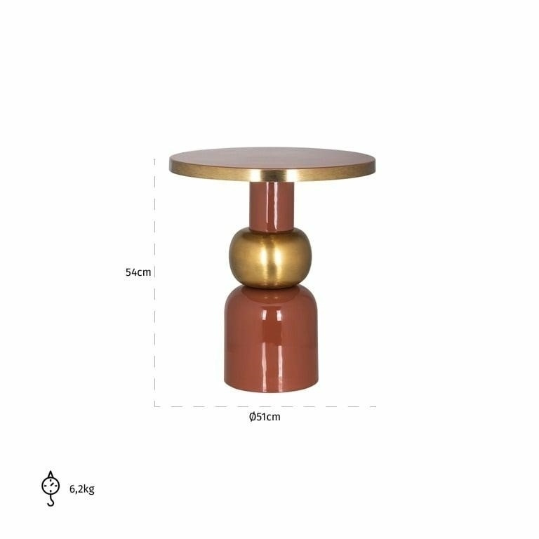 RICHMOND stolik JAIME 51. Stolik Jaime marki Richmond Interiors wykonany został w całości z solidnego metalu. Jego kształt i połączenie modnych kolorów nadaje mu szykowny oraz elegancki wygląd. Dla ciekawego efektu warto go połączyć z wyższym wariantem stolika Jaime. Idealnie sprawdzi się w nowoczesnych wnętrzach. Dostępna również czarna wersja pod nazwą Mose. Wymiary: wys. 54 cm / szer. 51 cm / gł. 51 cm Blat: śr. 51 cm Waga netto: 6,2 kg.Cechy produktu