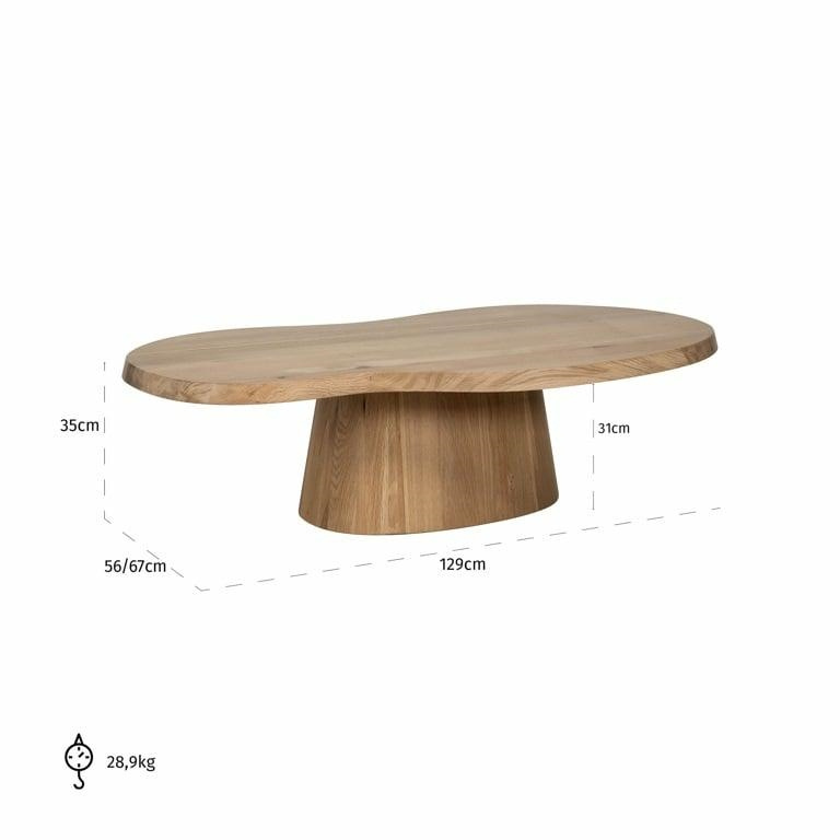 RICHMOND stolik kawowy RIVA. Kolekcja Riva zachwyca swoim pięknem i elegancją. Wykonanie z solidnego, naturalnego drewna dębowego, nadaje wyjątkowego charakteru i trwałości. Opływowy kształt blatu i masywna podstawa sprawiają, że Riva będzie stanowił idealne połączenie nowoczesności i klasyki, wpisując się przy tym w najnowsze trendy aranżacyjne. Zachęcamy do zapoznania się z całą kolekcją stołów, która z pewnością przypadnie do gustu miłośnikom stylowego i funkcjonalnego wnętrza. Wymiary: wys. 35 cm / szer. 130 cm / gł. 70 cm Waga brutto: 36,5 kg.