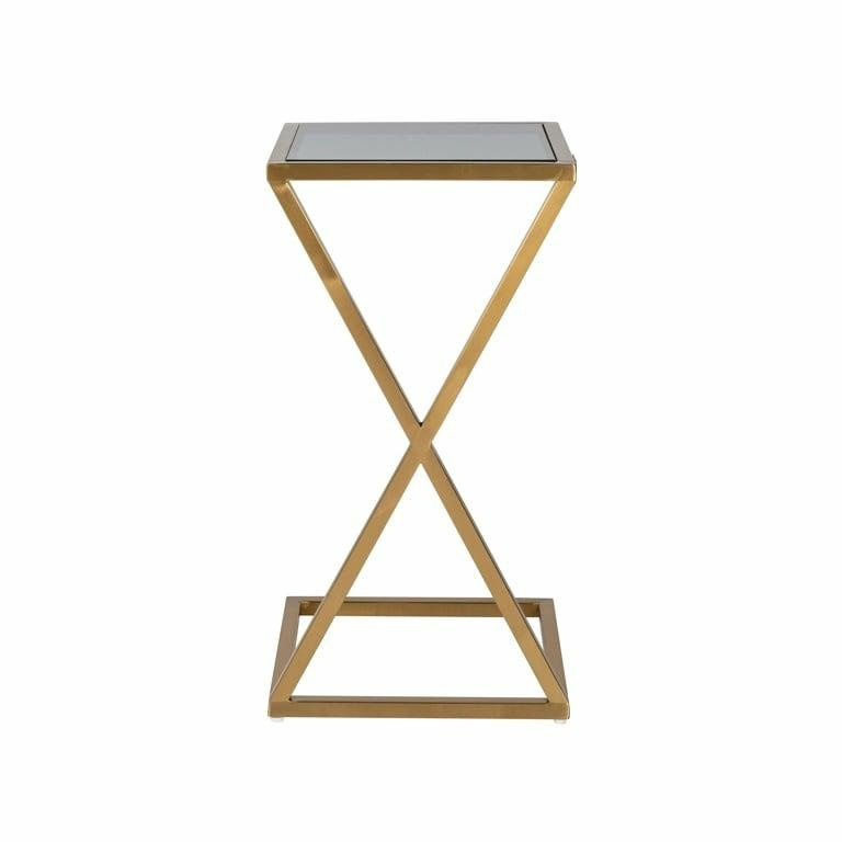 RICHMOND stolik PARAMOUNT złoty. Elegancki, designerski produkt wpisujący się w nowoczesne trendy. Ciemny szklany blat w połączeniu z podstawą w odcieniu szczotkowanego złota idealnie odnajdzie się w stylu Glamour. Swoim ciekawym kształtem, w którym ukryta jest rzymska dziesiątka, zwraca uwagę każdego miłośnika designu, jednocześnie zdobiąc przestrzeń. Dostępna również srebrna wersja. Wymiary: wys. 66 cm / szer. 35 cm / gł. 35 cm Waga netto: 4,5 kg.Cechy produktu