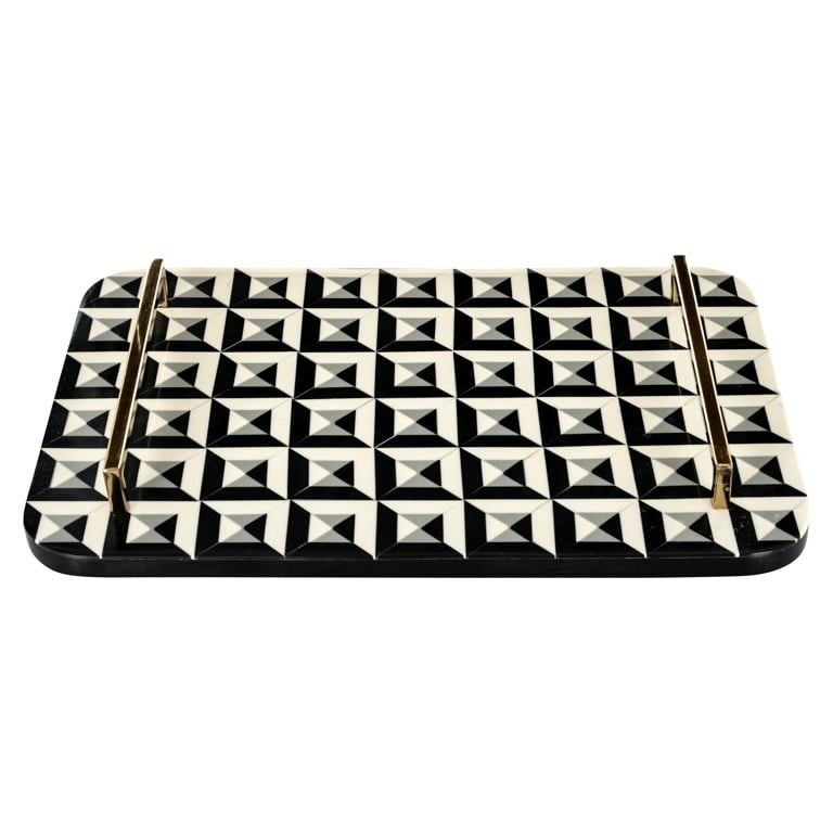- RICHMOND taca dekoracyjna BIRTE. Luksusowa taca, która przywołuje na myśl elegancję i nowoczesność. Biało-czarna rama została ozdobiona pięknym wzorem oraz złotymi uchwytami. Całość wykonano z żywicy oraz stali. Birte to sposób na stylowe udekorowanie Two