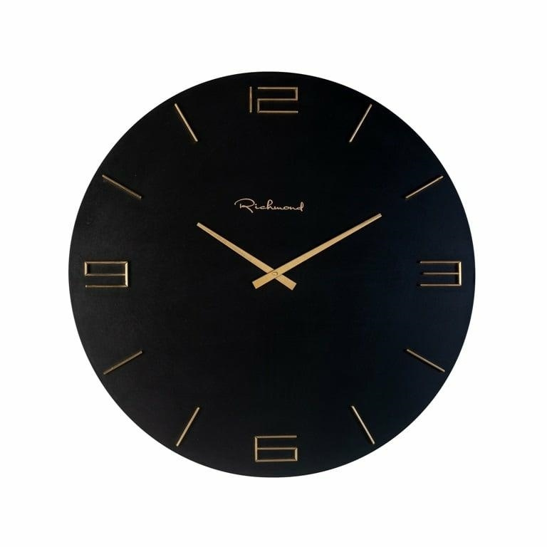 - RICHMOND zegar BRYAM czarny. Bryam to okrągły zegar ścienny, który wzbogaci wygląd Twojego wnętrza. Okrągła, czarna tarcza wykonana została z płyty MDF. Czas wskazują elementy z mosiądzu, co nadaje zegarowi szykowny oraz współczesny wygląd. Wymiary: wys.