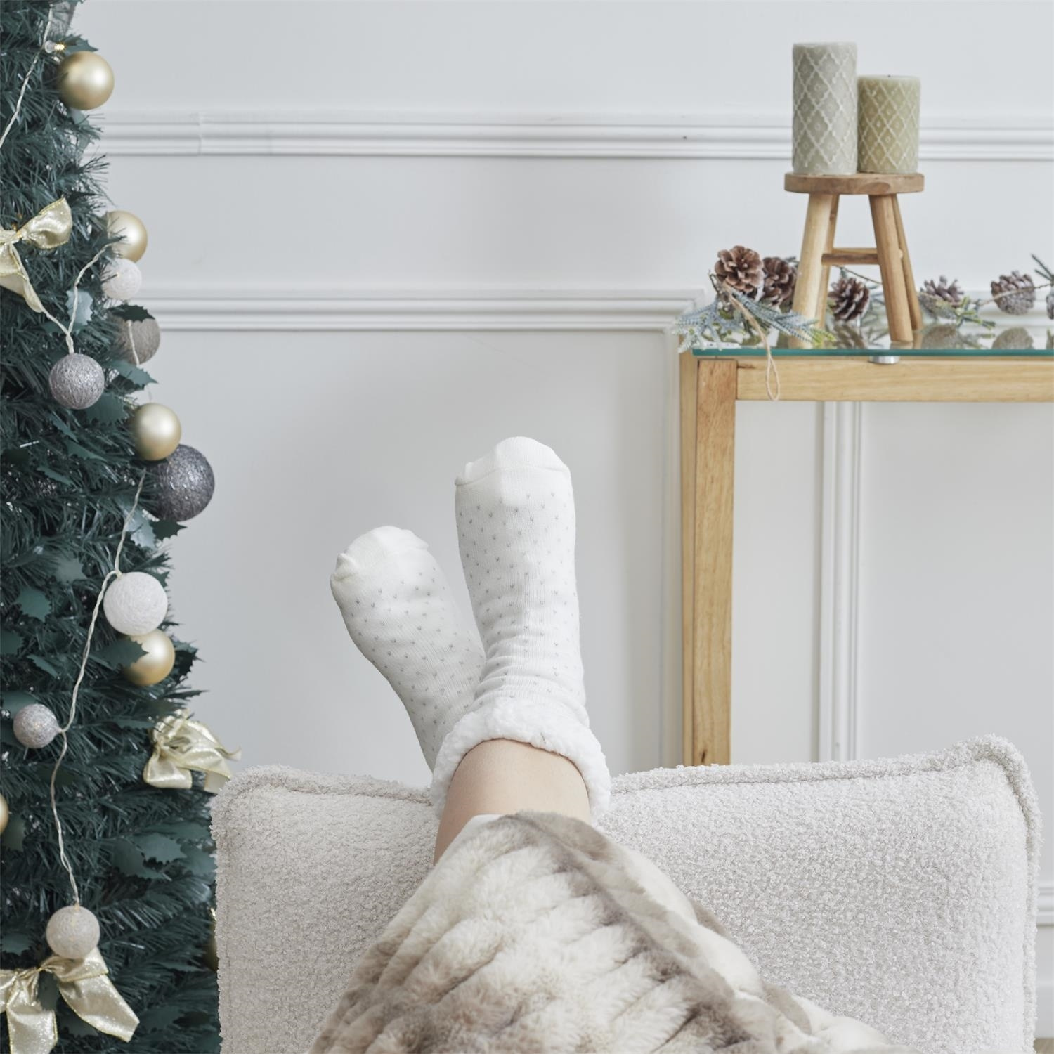 Skarpety z srebrnym motywem białe