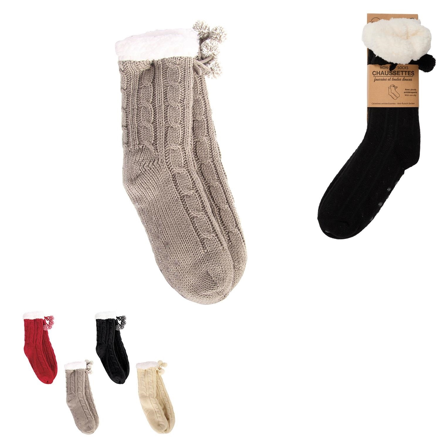 Damskie skarpety o wyściełanym środku oraz z pomponami to must have tej jesieni. Skarpetki od rozmiaru 36 do 41. Popraw swój komfort, rozgrzewając się tą parą specjalnych zimowych skarpet anty-zimno. Gwarancja sukcesu! Rozmiary: od 36 do 41. Skład: akryl i poliester.Cechy produktu