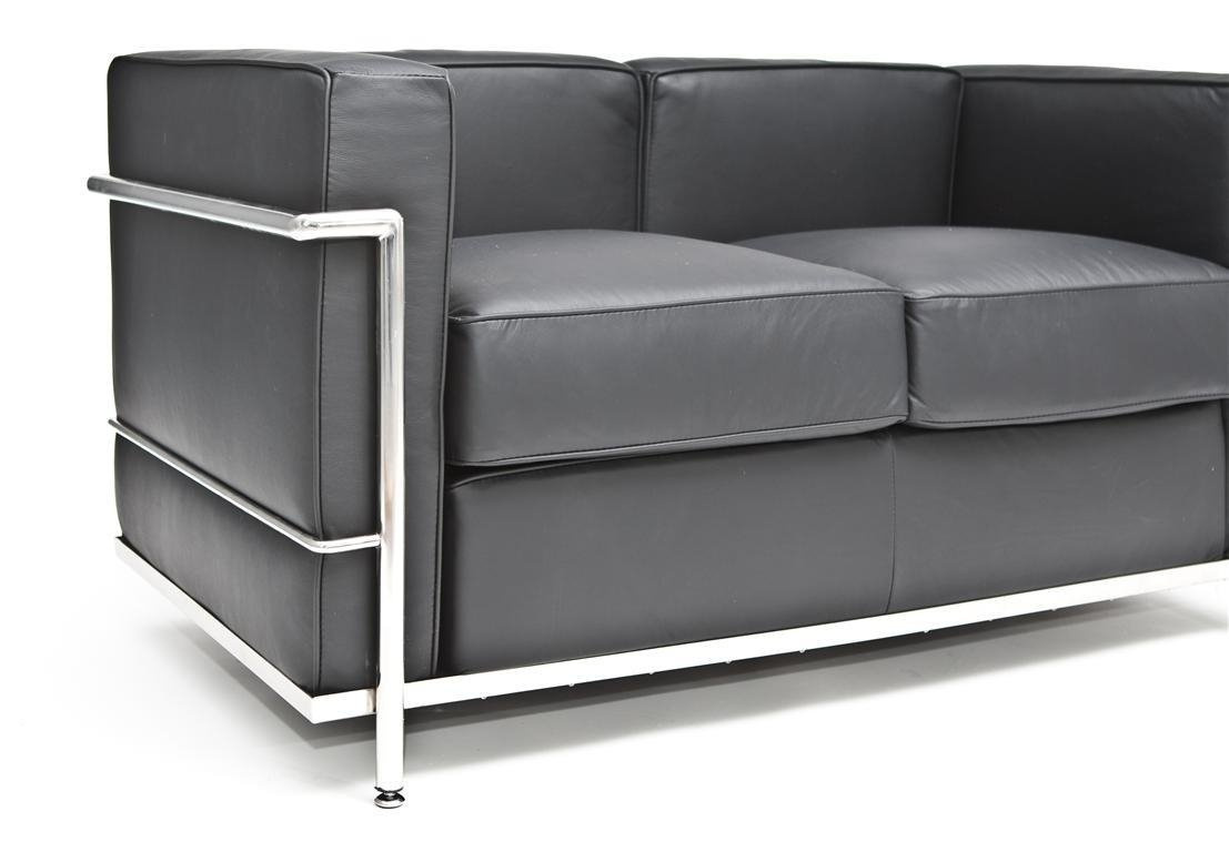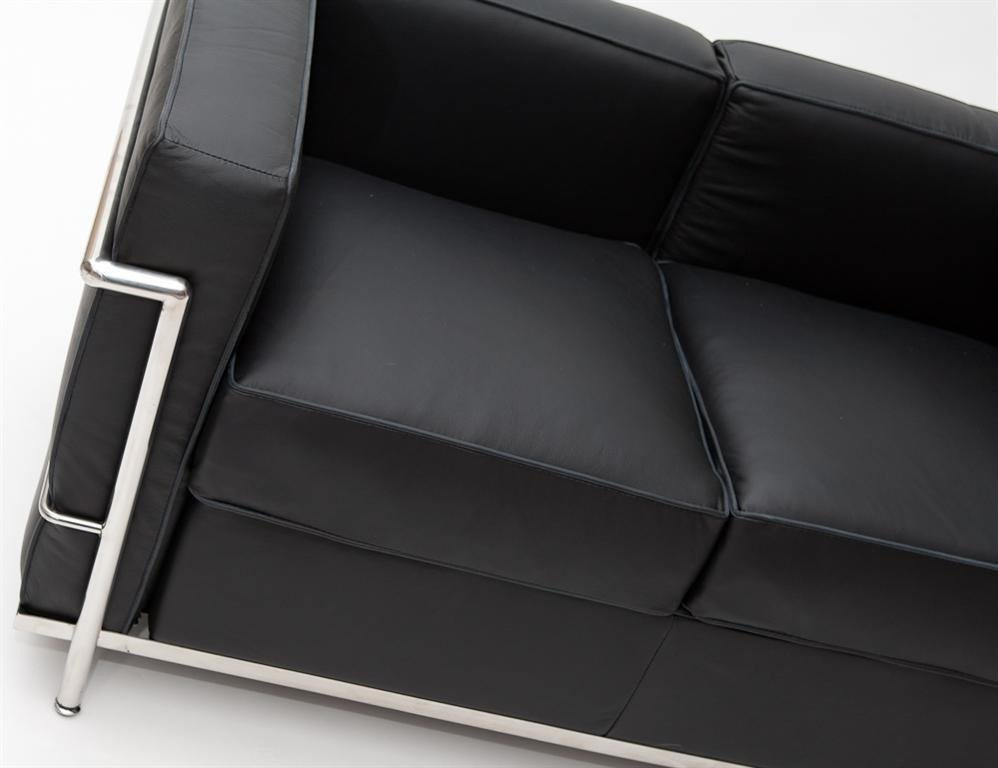 - Dwuosobowa sofa LC2 to klasyk designu pochodzący z 1928 roku. Połączenie skóry naturalnej z chromowaną konstrukcją nadaje meblowi eleganckiego wyglądu, a miękkie wypełnienie sofy gwarantuje komfort i wygodę. Idealna propozycja do pracowni, biur i poczekal