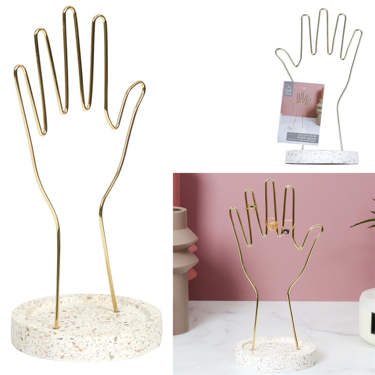 - Stojak na biżuterię Arty to ozdoba o wykończeniu imitującym lastryko oraz koloru złotego. Ozdoba/organizer nas pierścionki, bransoletki lub kolczyki w kształcie dłoni sprawdzi się u każdej kobiety, która uwielbia biżuterie. Dzięki stojakowi na biżuterię A