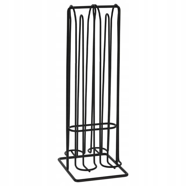 Stojak na kapsułki do kawy wykonany z metalowego drutu, pokryty czarną matową powłoką, to eleganckie i praktyczne rozwiązanie do przechowywania kapsułek. Jego wymiary wynoszą 12x10x29 cm, a waga to 365 gramów, co czyni go lekkim, ale jednocześnie stabilnym. Stojak jest zaprojektowany tak, aby pomieścić do 32 kapsułek modelu Nespresso lub innych o tym samym wymiarze, umożliwiając łatwy dostęp do ulubionych smaków i utrzymanie porządku. Matowa, czarna powłoka dodaje nowoczesnego charakteru, a prosty design sprawia, że stojak doskonale pasuje do różnych aranżacji wnętrz. Każda sztuka zapakowana jest w naszą unikalną papierową osłonę i woreczek foliowy, co zapewnia dodatkową ochronę podczas transportu. Ten stojak na kapsułki do kawy jest nie tylko praktycznym dodatkiem do każdej kuchni, ale także stylowym elementem, który wprowadzi elegancję do każdego kącika kawowego.Cechy produktu