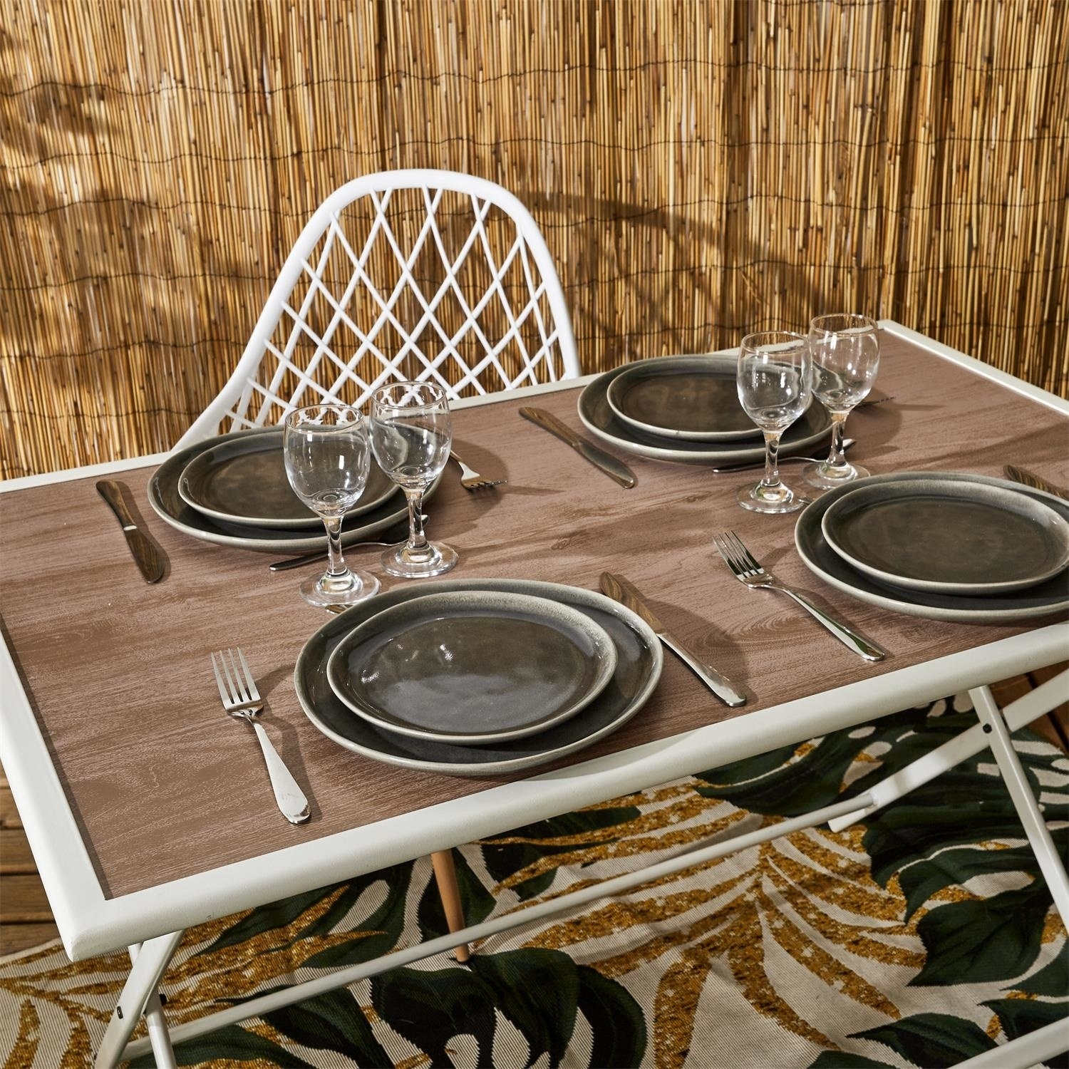 Składny stół ogrodowy na 6 osób to idealny mebel do długiego biesiadowania w gronie rodzinnym. Szklany blat stołu ozdobiony został printem imitującym drewno. DŁUGOŚĆ PRODUKTU (CM) 110 WYSOKOŚĆ PRODUKTU (CM) 71 GŁĘBOKOŚĆ PRODUKTU (CM) 70 WAGA PRODUKTU (KG) 14,4 Materiał: szkło, metal, pp SAMODZIELNY MONTAŻ Tak NA ZEWNĄTRZ Tak OBRÓBKA EPOKSYDOWACechy produktu
