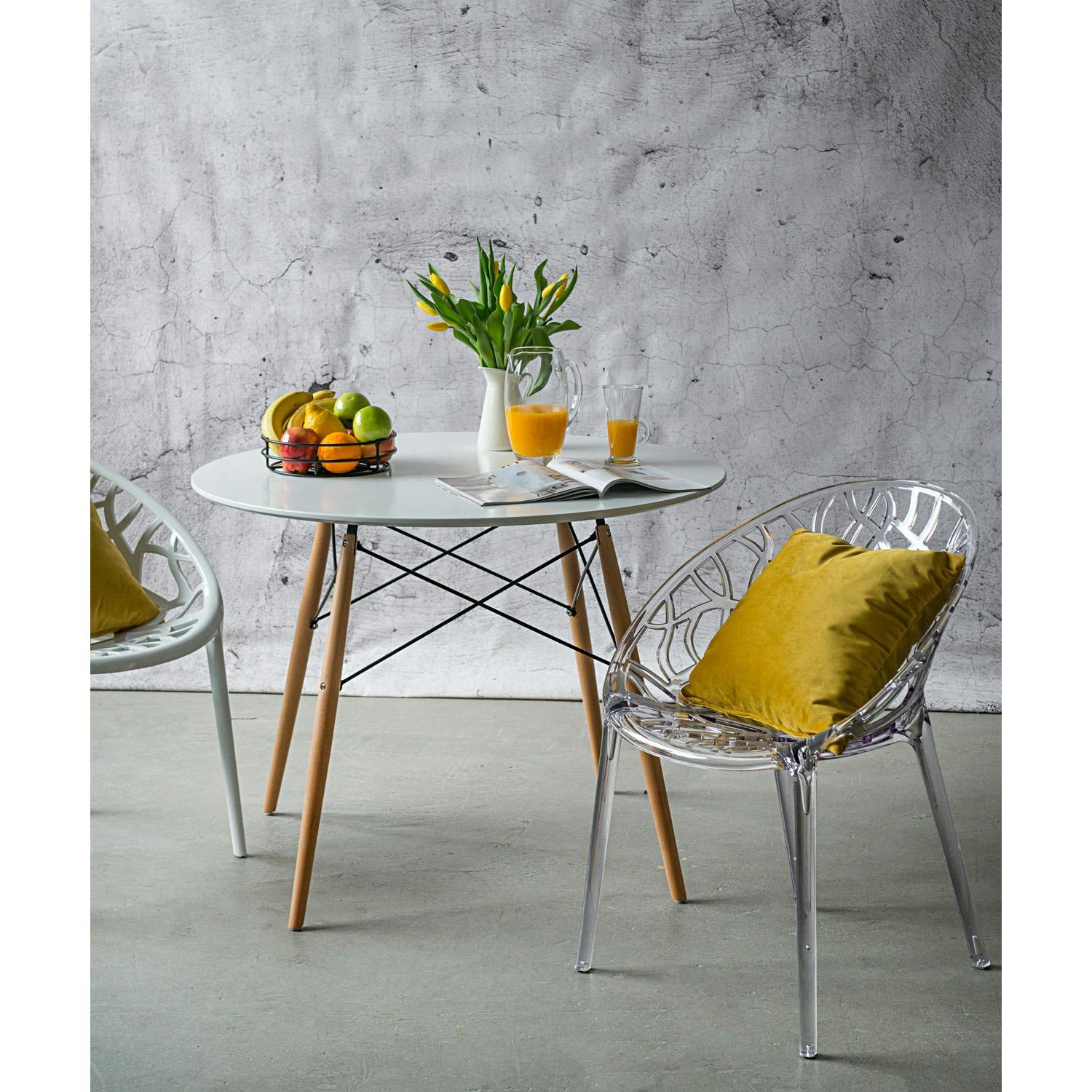 Niezwykły stolik o klasycznej formie. Blat stołu wykonany jest z lakierowanej płyty MDF. Podstawa wykonana jest z drewna bukowego oraz metałowych łączeń lakierowanych na czarno kontrastujących z białym blatem stolika.Cechy produktu