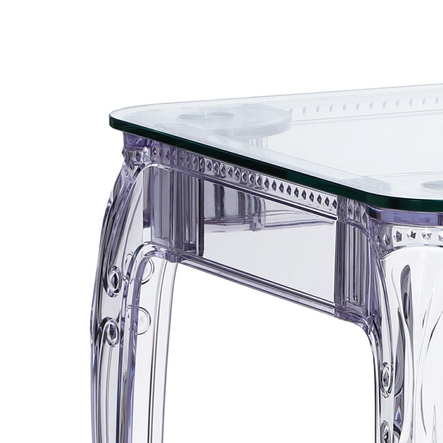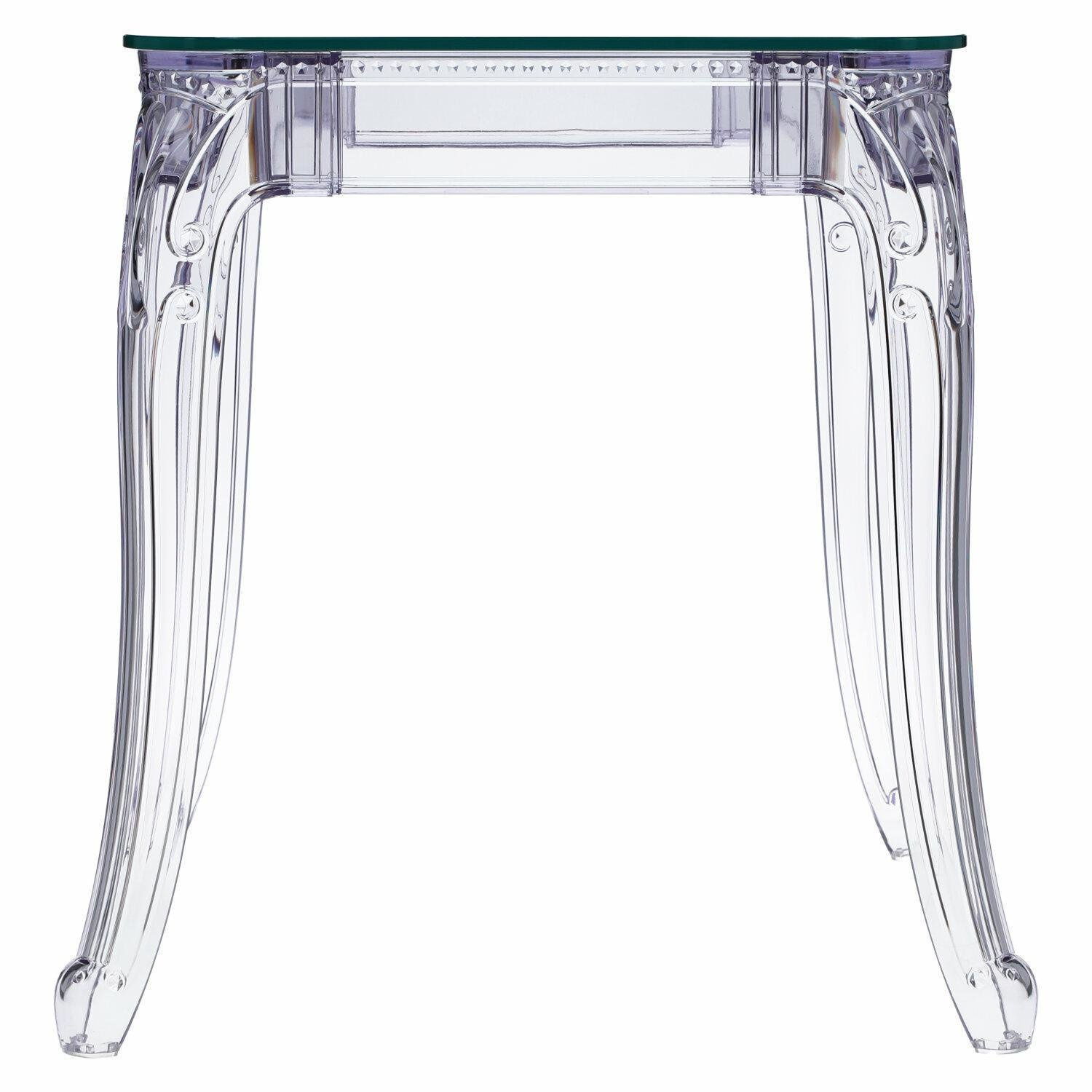 Stół Ghost to połacznie klasycznej wręcz barokowej formy oraz nowoczesnej techniki, oraz wytrzymałych materiałów. Stół Ghost posiada szklany blat o grubości 10 mm, który podpierają bogato zdobione poliwęglanowe nogi. Poliwęglan to bardzo wytrzymałe tworzywo o szerokim zastosowaniu. Dzięki temu, że nogi stołu zostały zrobione ze sztucznego tworzywa, są one odporne na uszkodzenia mechaniczne czy zadrapania i wilgoć. Ghost to doskonały stół do małej jadalni, kuchni lub salonu. Przezroczysta forma mebla sprawia, iż nie przytłacza on pomieszczenia, a wręcz odbija światło i wnętrze wydaje się większe. Stół dostępny jest w dwóch rozmiarach. Grubość blatu: 10 mm Grubość nóg: od 5 do 8,5 cmCechy produktu