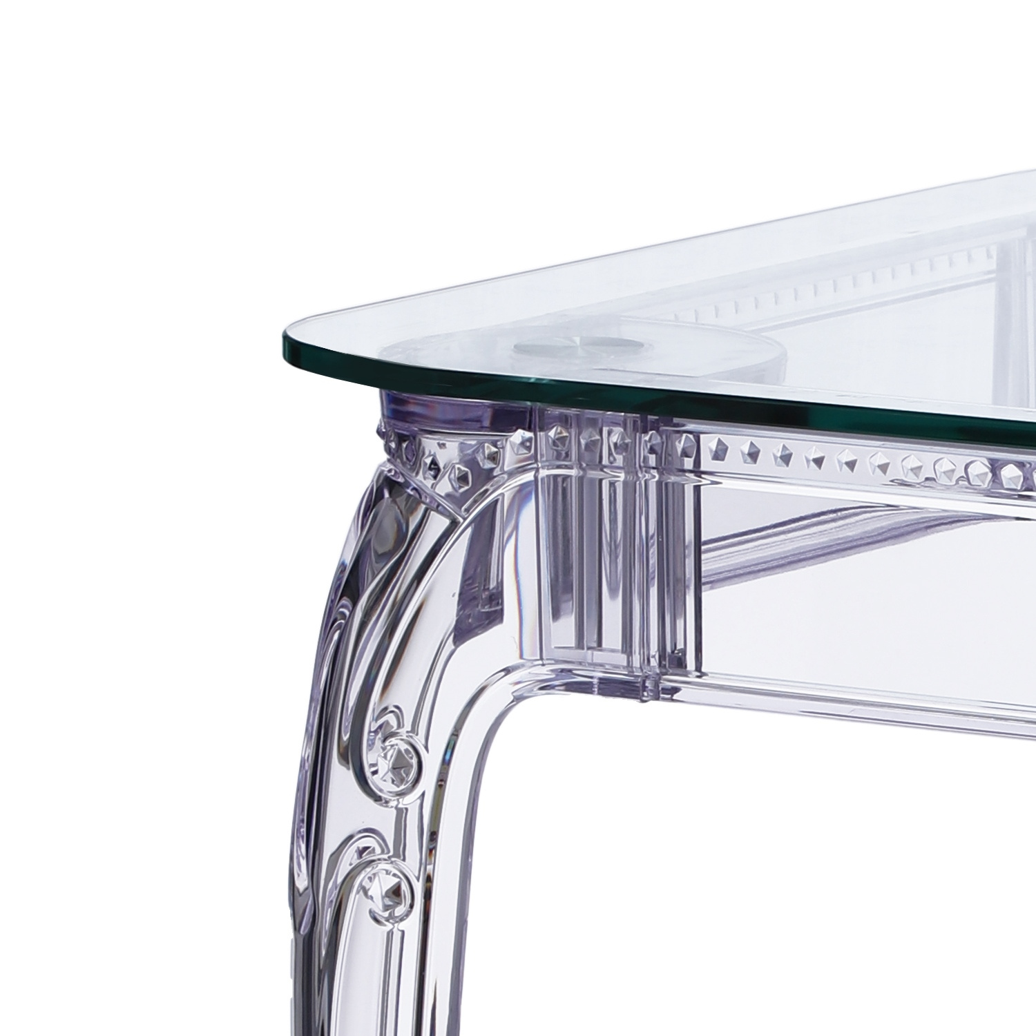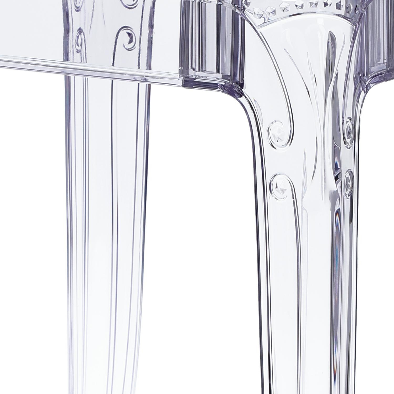 - Stół Ghost to połacznie klasycznej wręcz barokowej formy oraz nowoczesnej techniki, oraz wytrzymałych materiałów. Stół Ghost posiada szklany blat o grubości 10 mm, który podpierają bogato zdobione poliwęglanowe nogi. Poliwęglan to bardzo wytrzymałe tworzy