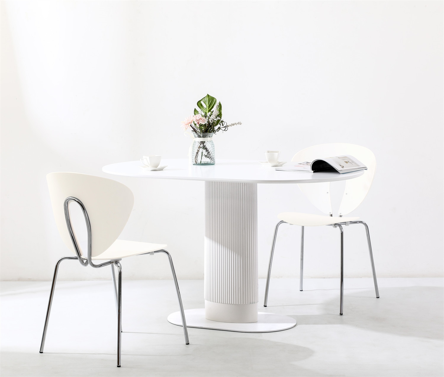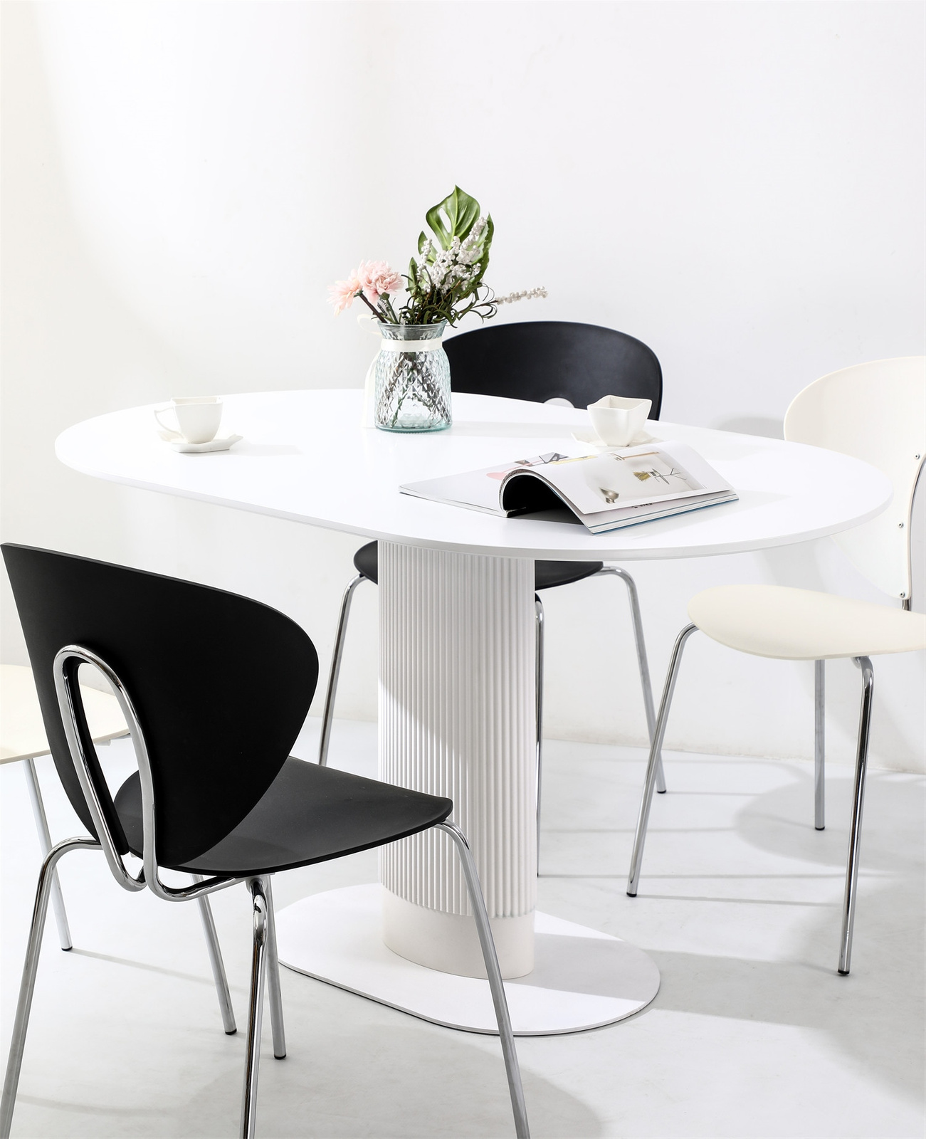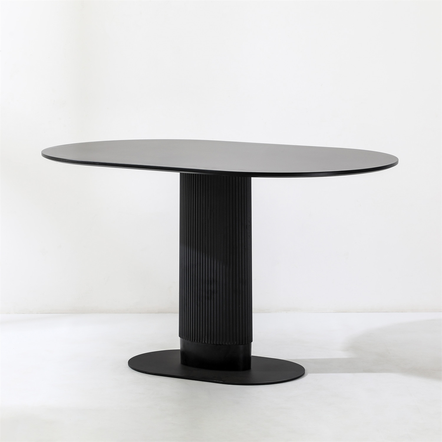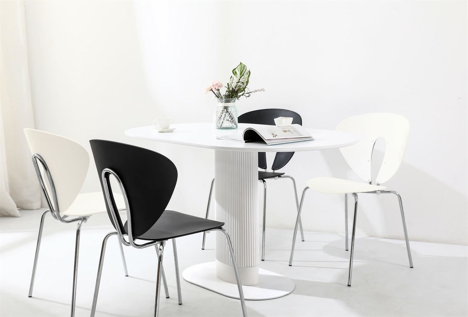 Stół Maxim to nowoczesny projekt o ponadczasowym wyglądzie. Owalny blat o szerokości 120cm i głębokości 70cm jest idealną powierzchnią dla 5-6 osób. Stół na jednej nodze wykonany został z płyty MDF oraz metalowej podstawy. Noga stołu wykonana z metalu ozdobiona została pionowymi lamelami z tworzywa sztucznego, które dodają jej nowoczesnego wyglądu. Płaska podstawa stołu to metal malowany proszkowo na czarno. Blat stołu wykonany z wytrzymałej płyty MDF zachwyca swoim wyglądem, dzięki delikatnemu podcięciu, które dodaje mu lekkości. Stół występuje w dwóch wersjach kolorystycznych. Wymaga montażu Waga stołu: 25,6 kgCechy produktu