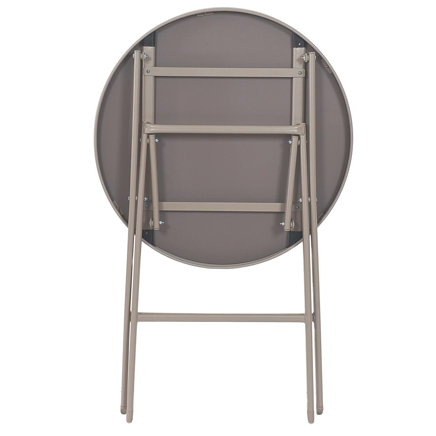 Okrągły, składany stół Elba to idealny mebel na popołudniową kawę na tarasie. stolik średicy 60cm sprawdzi się na niedużym balkonie lub patio. Dzięki łatwemu złożeniu, stolik możemy łatwo schować, a sam mebel nie zajmie dużo miejsca podczas przechowywania. Stolik wykonany został z metalu malowanego proszkowo oraz tworzywa sztucznego. Stolik mozna używać na zewn ątrz pod warunkiem ukrycia go przed mocnymi promieniami słonecznymi, gdyż nie jest odporny na promienie UV. Stolik również nie nadaje się do użytkowania podczas deszczu. W razie zmoczenia mebla należy niezwłocznie go wytrzeć do sucha. Wymiary kartonu; 62,5x11,5x98 cm Mx 1szt w kartonie Waga 8kgCechy produktu