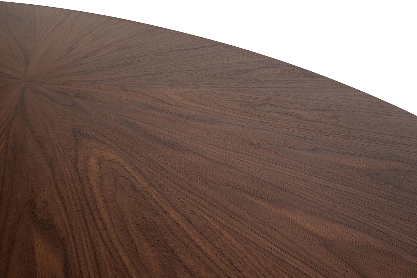 - Stół UFO orzech / naturalny fornir. Kwintesencja luksusu i elegancji, która wprowadzi do jadalni wyjątkowy styl. Owalny blat w połączeniu ze stożkowatą podstawą tworzy harmonijną, nowoczesną formę, a złoty element łączący te dwa elementy dodaje wyrafinowa