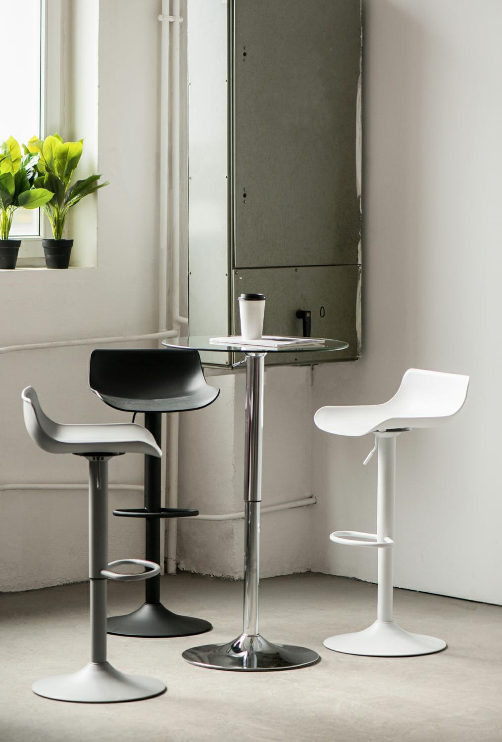 Nowoczesny stołek barowy Bar One marki Simplet to doskonałe rozwiązanie do restauracji, barów czy hotelowych pomieszczeń. Minimalistyczny stołek barowy Bar One posiada regulacjię wysokości siedziska w zakresie 21cm, wygodną podpórkę na nogi oraz obrotowe siedzisko. Wszystkie te cechy sprawiają, że stołek jest niezwykle funkcjonalny- możesz dopasować jego wysokość siedziska do każdej wysokości blatu. Dodatkową zaletą jest matowe wykończenie, które dodaje elegancji i stylu. Stołek barowy Bar One Simpet dostępny jest również w innych wersjach kolorystycznych. Sprawdzi się doskonale w barze, restCechy produktu