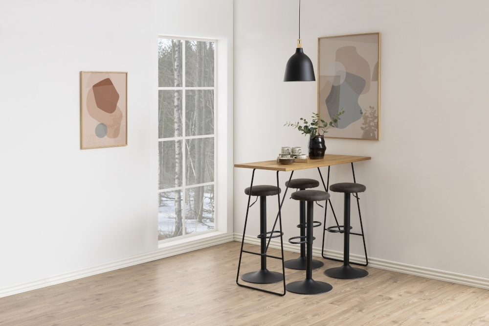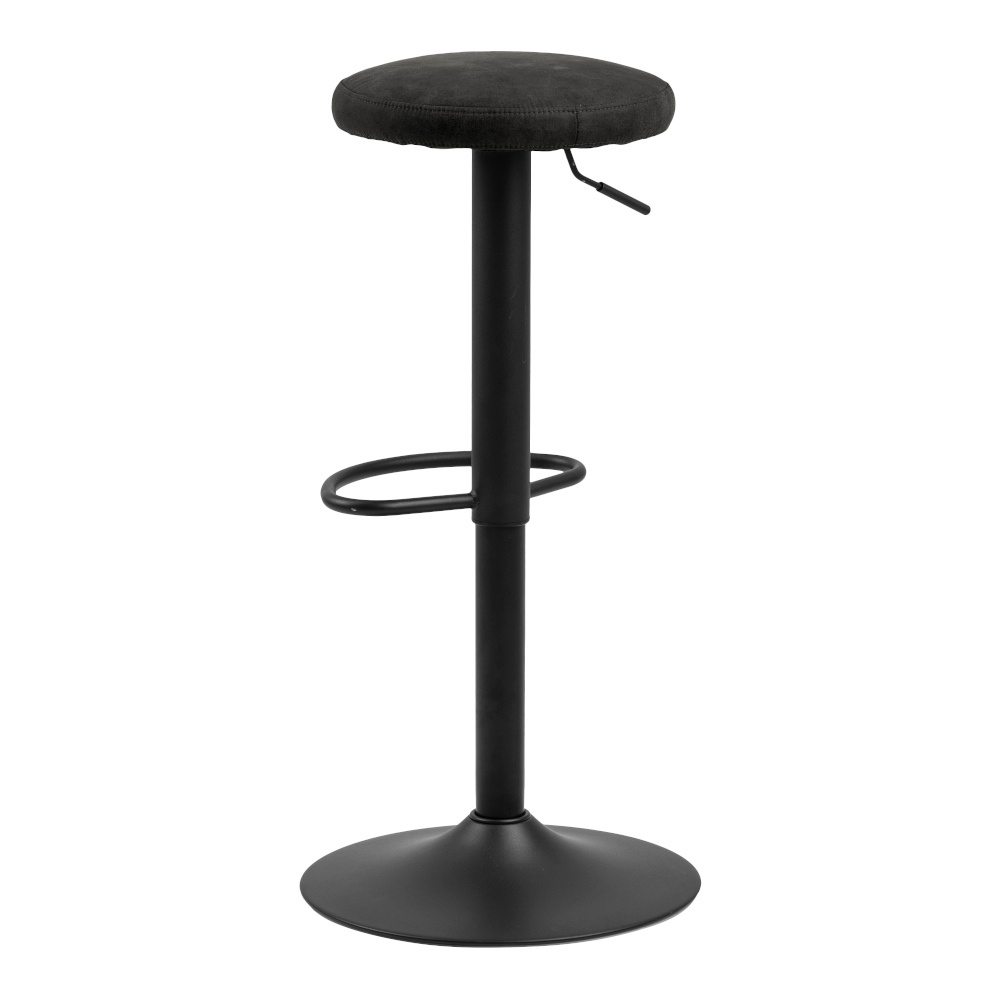- Stołek barowy Finch będzie idealnym siedziskiem przy kuchennej wyspie. Na metalowej, pomalowanej proszkowo na kolor czarny stopie, znajduje się siedzisko, które dla wygody obszyte zostało tkaniną w kolorze ciemnej szarości. Siedzisko wyposażono w mechaniz