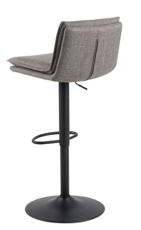 - Stołek barowy Flynn posiada siedzisko i oparcie wypełnione pianką poliuretanową i tapicerowane tkaniną Basel fabric light grey-brown 34 FR. Jego atutem jest miękka, wygodna poduszka. Podstawę stanowi jedna wysoka, metalowa noga zakończona szerokim dyskiem