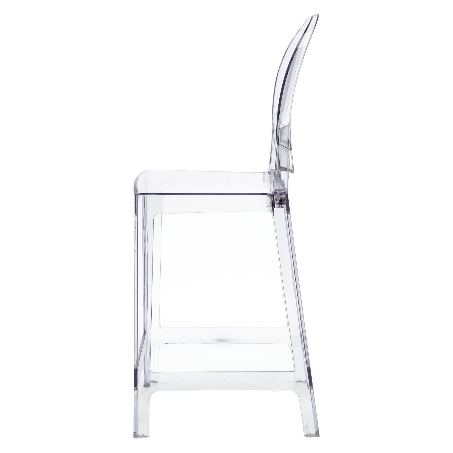 Stołek barowy Viki to idealne uzupełnienie krzeseł z tej samej serii. Transparentny stołek barowy z zaokrąglona górna część oparcia kontrastuje z kwadratowym siedziskiem tworząc niespodziewanie elegancką całość.,Mimo swej delikatności formy, stołek jest wygodny oraz stabilny. Prezentowany produkt jest inspirowany projektem Victoria.Maksymalne obciążenie wynosi 120kg. Stołek wymaga montażu. Wysokość podnóżka 27cmCechy produktu